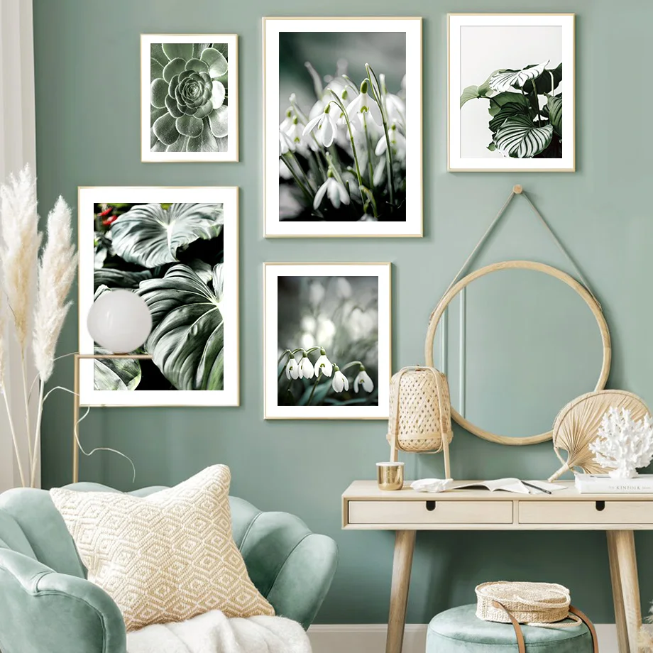 Картина на холсте с изображением листьев, цветов, суккулентов, худо...