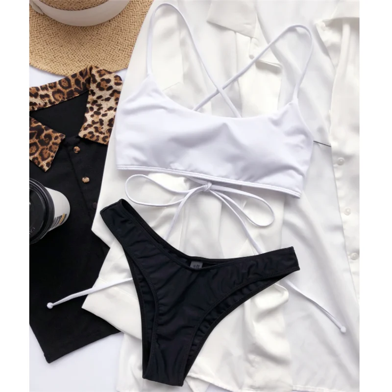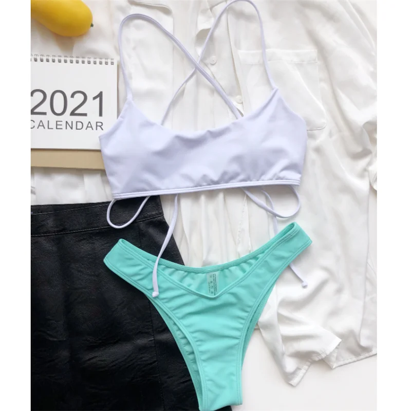 Сексуальное бикини GNIM 2021, бандажный купальник с открытой спиной, Женский комплект из 2 предметов, пляжная одежда, спортивный купальник, женское бикини, купальный костюм