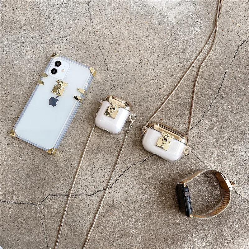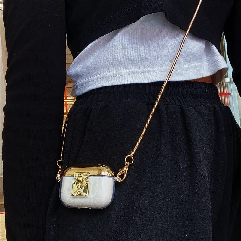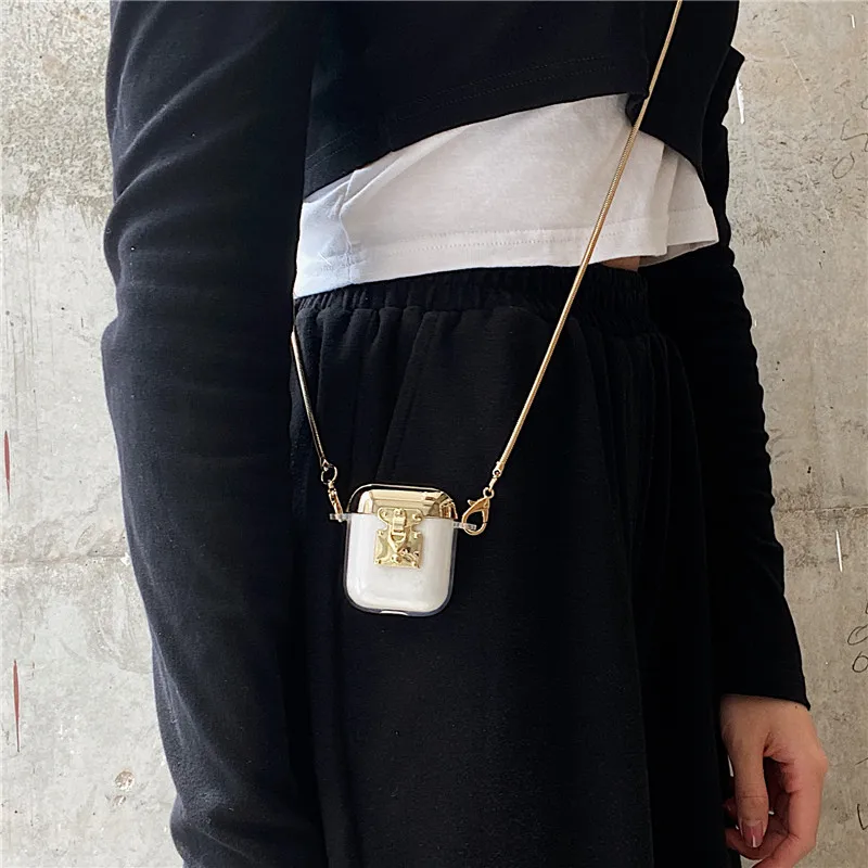 Брендовый прозрачный металлический ремешок через плечо, силиконовый чехол для гарнитуры Apple AirPods 1 2 Airpods Pro, аксессуары для Bluetooth наушников