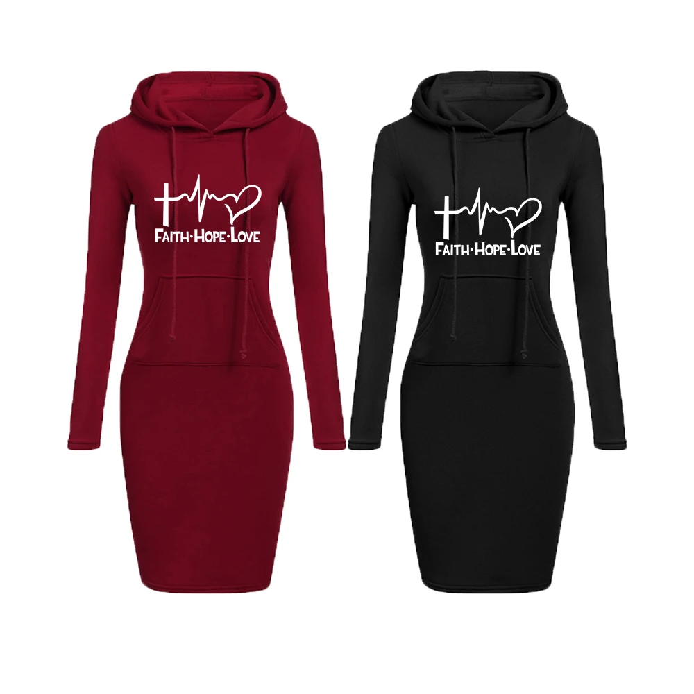 Женское платье с капюшоном, повседневное простое платье до колен с длинным рукавом и воротником-стойкой, с карманами, для спорта, весна-осень 2021
