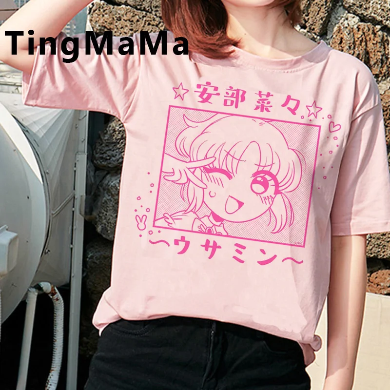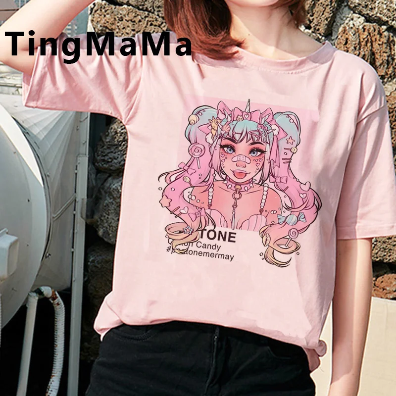 Короткая футболка с героями из японского аниме Harajuku E купальный костюм с изображением, футболка в стиле панк для женщин гранж размера плюс harajuku kawaii повседневное tumblr футболка tumblr