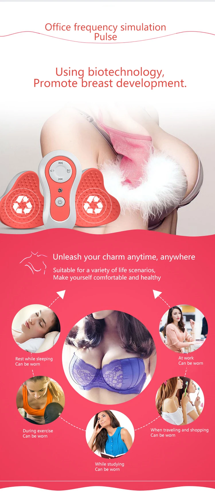 Удобные функции, в том числе водонепроницаемый дизайн, бесшумная работа, простой пульт дистанционного управления и удобный способ зарядки USB.10 рабочих режимов и 5 уровней интенсивности, полностью настроить для достижения лучших эффектов.3 функции синхронизации: 5 минут, 10 минут и 15 минут. Время работы по умолчанию составляет 10 минут.Принимает с имитацией массажа человека, делая точное сообщение для груди акупунктурные точки для увеличения груди.Этот электрический массаж груди может накапливать кровоток, обновлять активные клетки, восстанавливать эластичность кожи, предотвращать провисание и деформацию груди.Эффективное увеличение груди без необходимости делать дорогостоящую операцию на груди.Идеально подходит для женщин в послеродовой период или женщин, у которых Обвисание и деформация груди.Примечание: