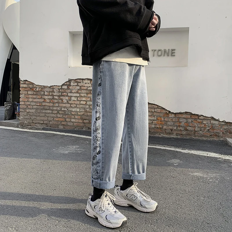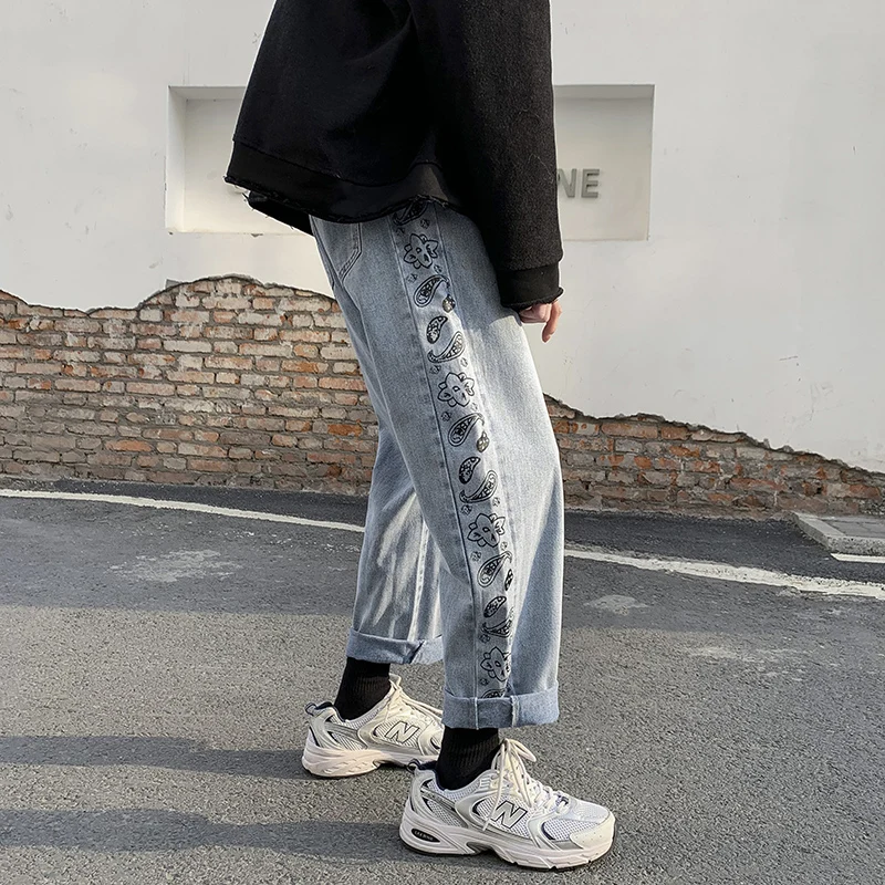 Мужские джинсы в стиле хип-хоп с графическим принтом, женские осенн...