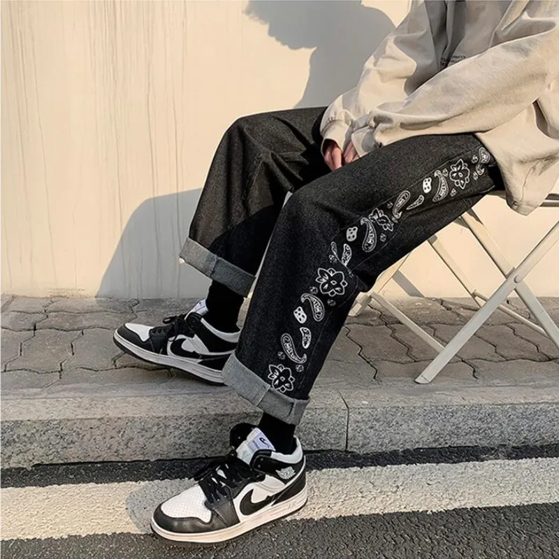 Мужские джинсы с рисунком цепь с плетением бабочка, прямые широкие ...