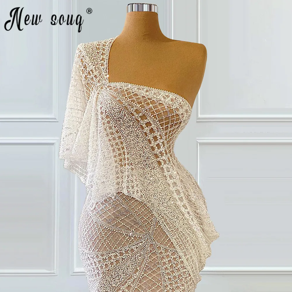 Арабское вечернее платье женское на одно плечо с бисером, кружевное...