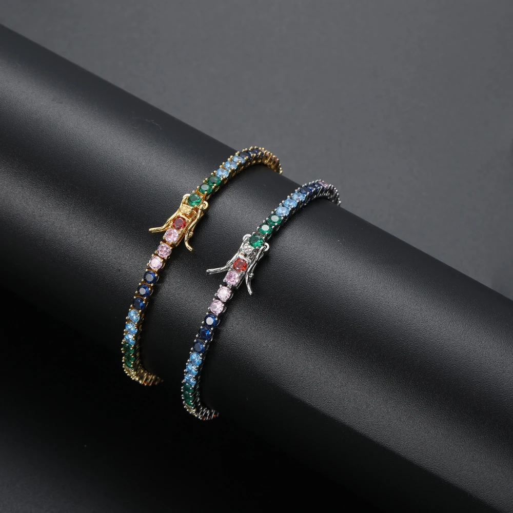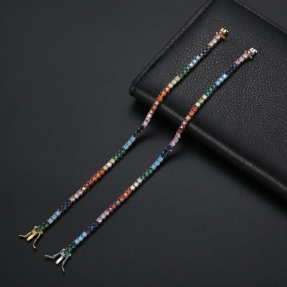 3 мм, Яркие Камни, украшенные сверкающими стразами, браслет для тенниса, 7 дюймов, 8 дюймов, латунный браслет, женская бижутерия CZ BB209