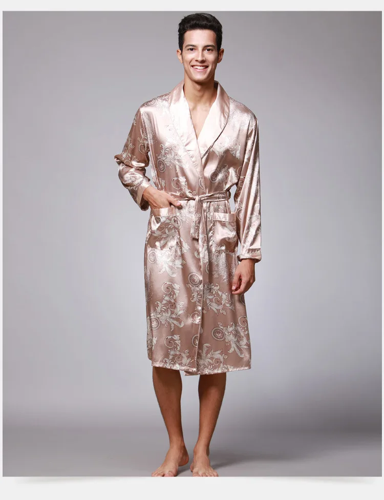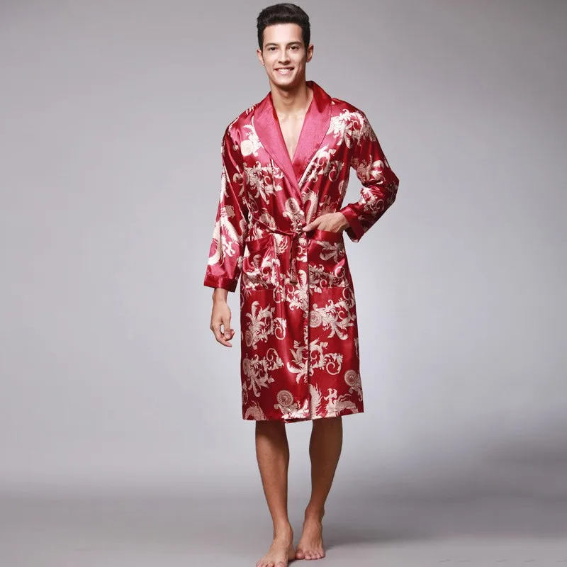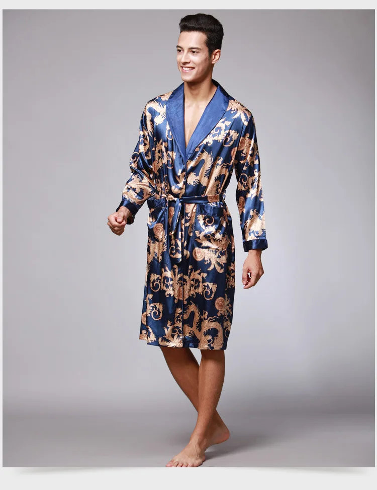 Халат-кимоно мужской с принтом, атласное шелковое ночная рубашка, П...
