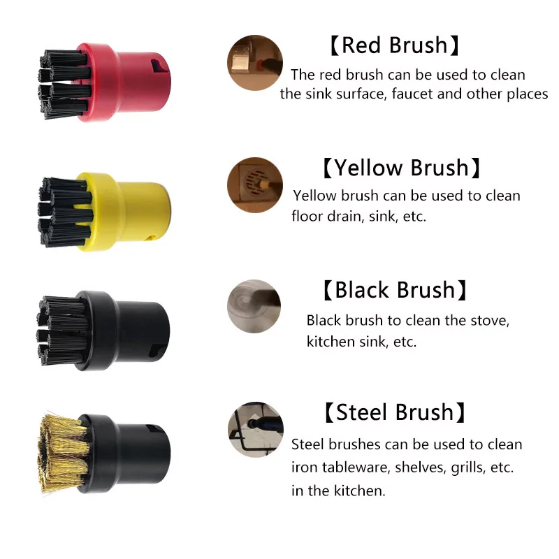 Различные цвета могут очистить различные места, чтобы избежать перекрестной инфекции【Красная кистьКрасная Кисть может использоваться для очистки поверхности раковины, крана и других мест【Желтая кистьЖелтая кисть может использоваться для очистки пола, раковины и т. д.【Черная кистьЧерная щетка для очистки печи, кухонной раковины и т. д.【Стальная щеточкаСтальные щетки можно использовать для очистки железной посуды, полок, грилей и т. д. На кухне