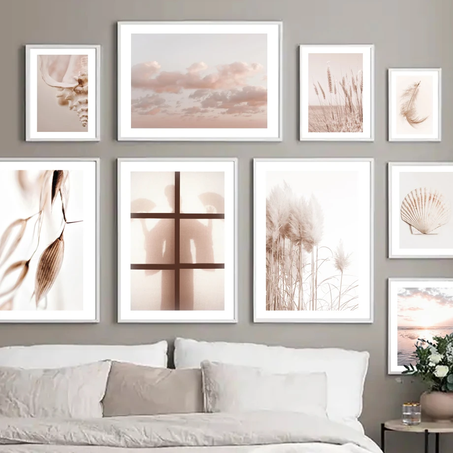 Морской пляж Рид перо цветок лист Гейша настенная живопись холст скандинавские плакаты и принты настенные картинки для декора гостиной