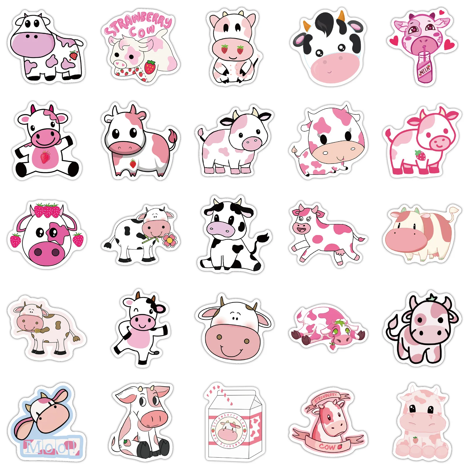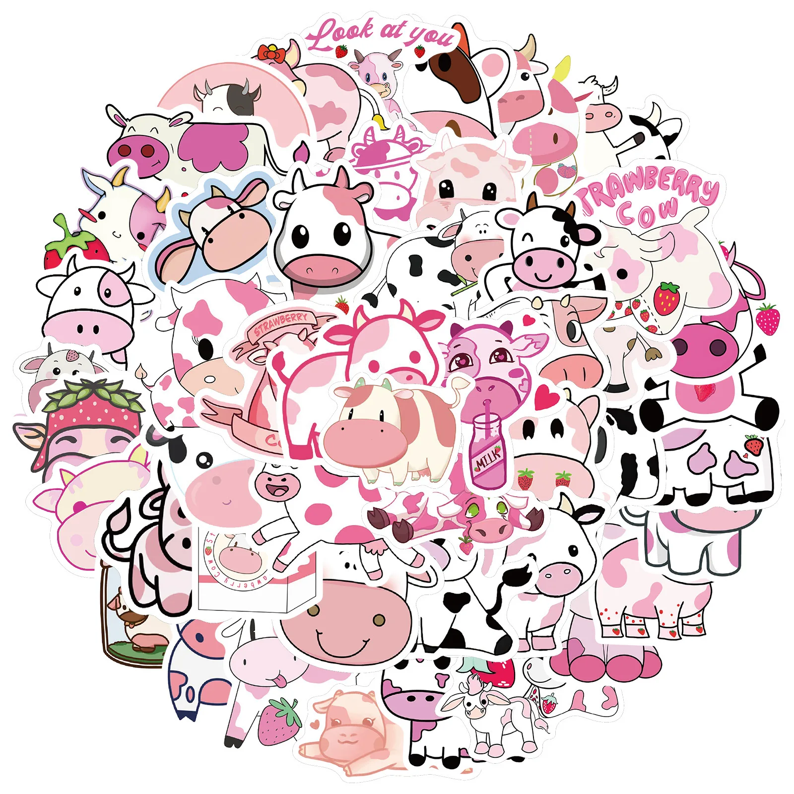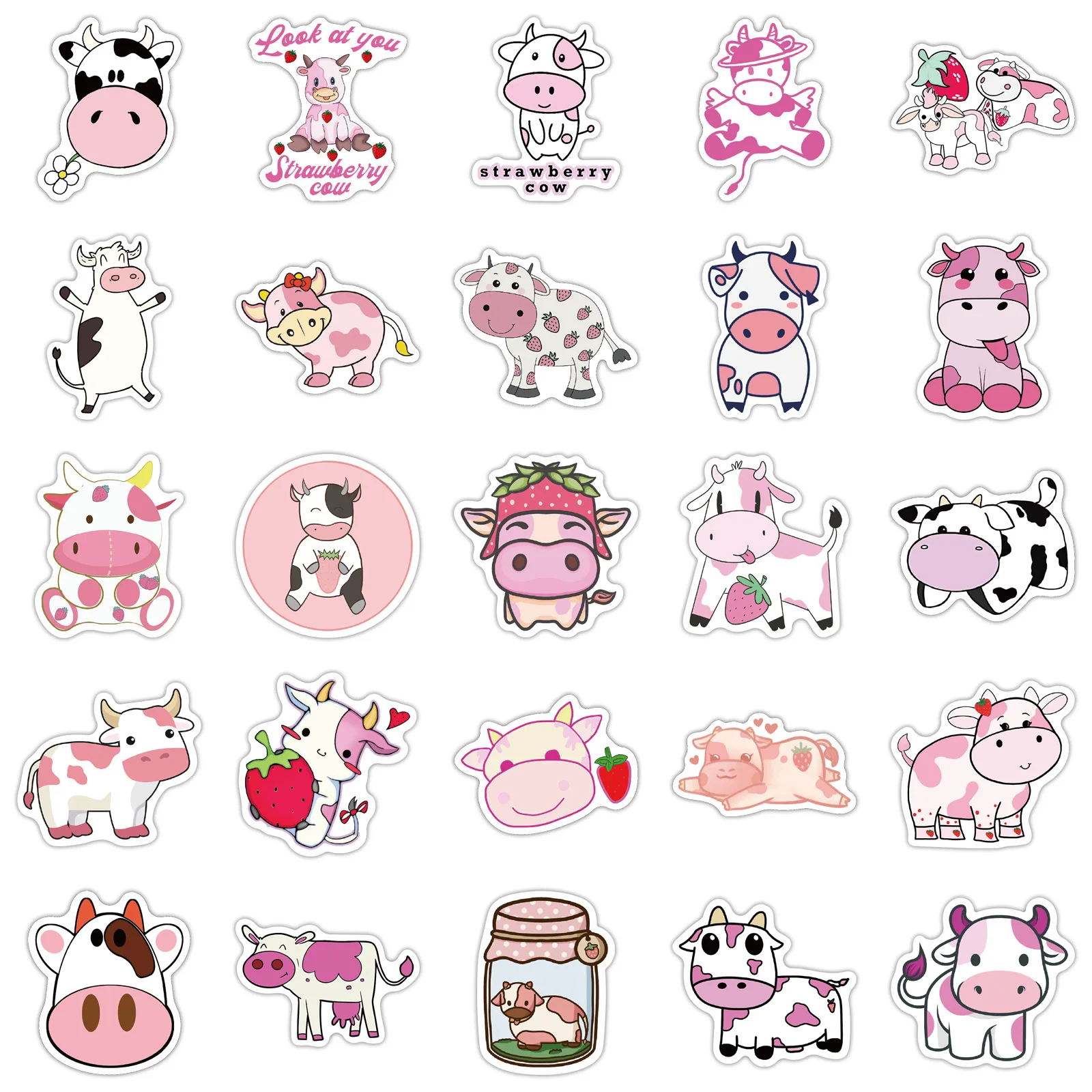 50 шт. милые Мультяшные наклейки VSCO с розовой клубникой и коровой...