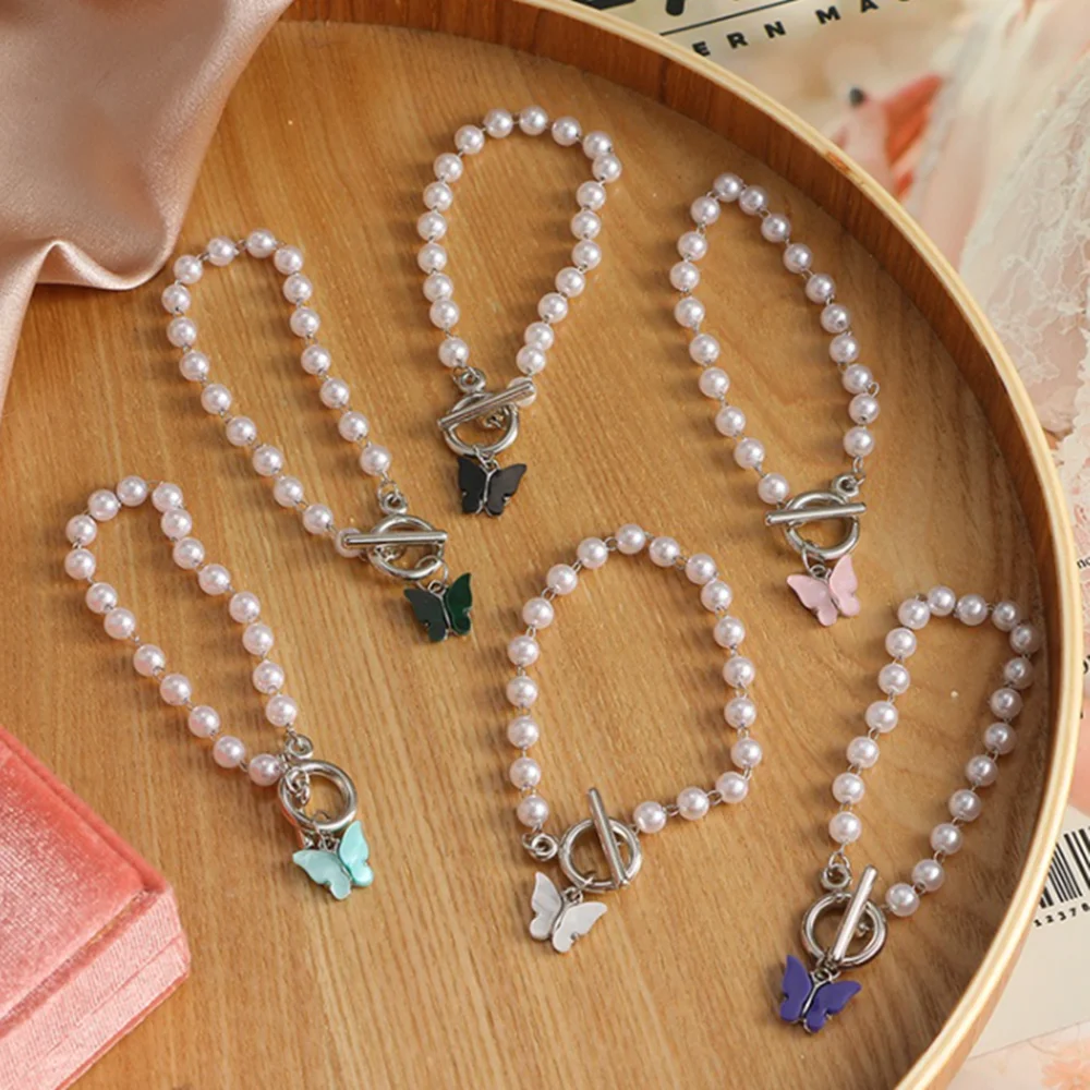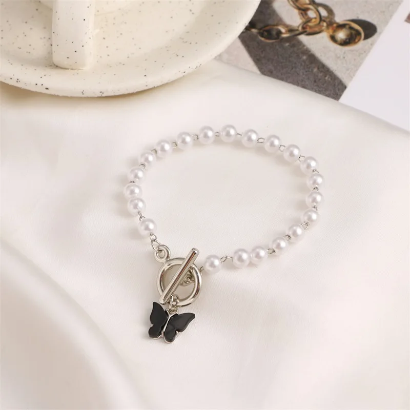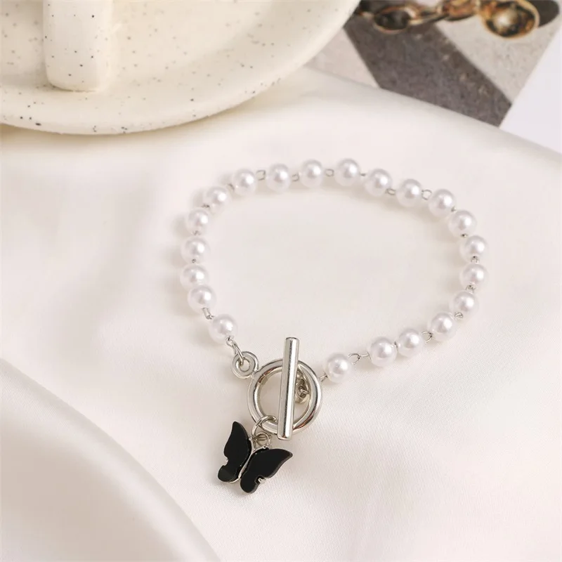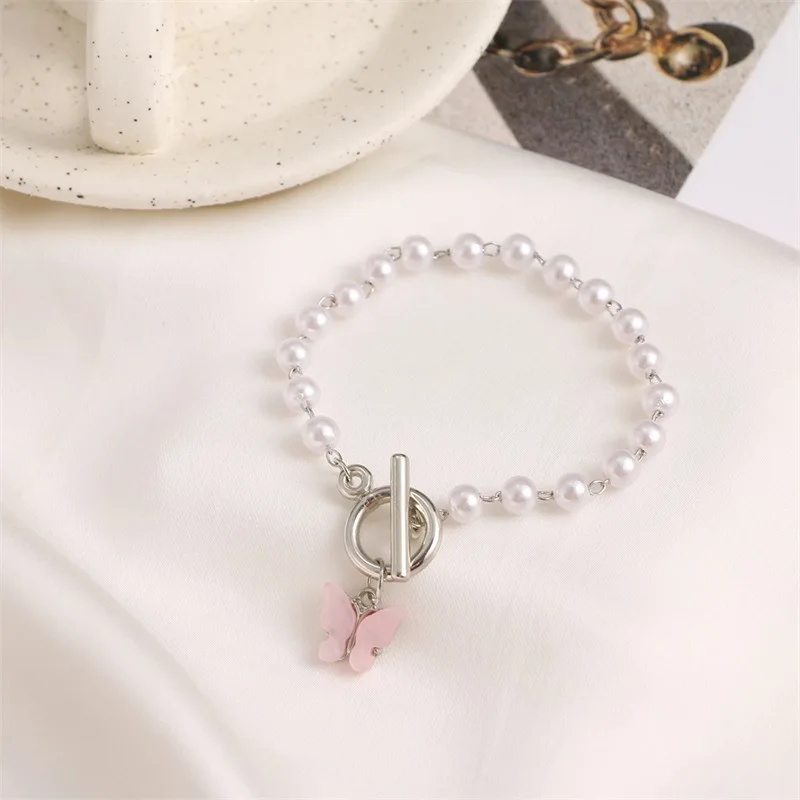 DIEZI в Корейском стиле Японии имитация браслет из Жемчужной цепи для женская мода, милое детское платье с изображением милой бабочки браслеты с подвесками 2021 новые ювелирные изделия