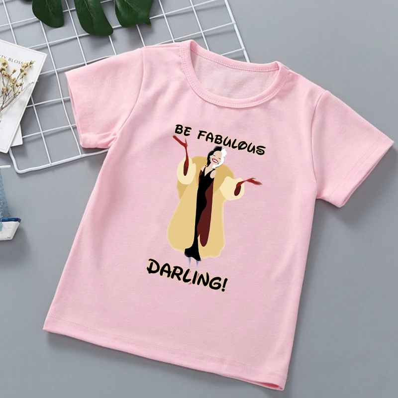 2021 Kawaii Cruella De Vil Dogs графическая футболка, детская одежда, модная смешная мультяшная футболка для девочек, футболки для девочек, летние топы