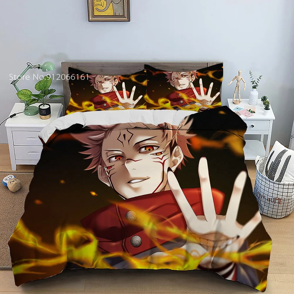 2/3 шт.Jujutsu KaisenКомплект постельного белья с рисунком аниме, пододеяльник для спальни, наволочка (без простыней), украшение