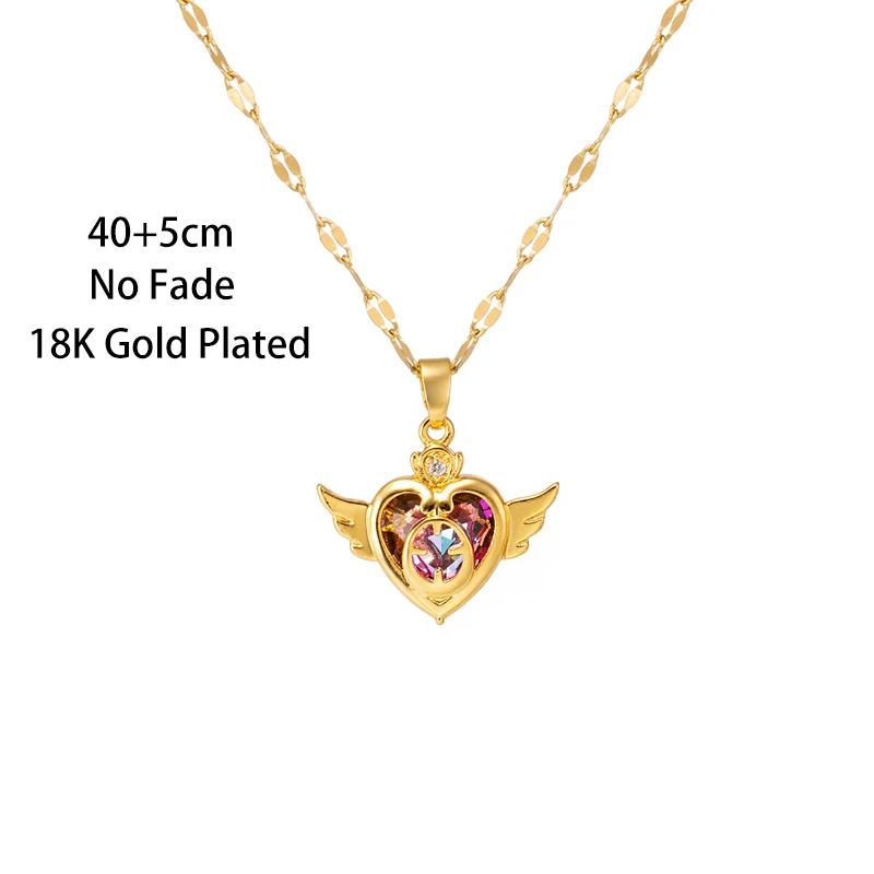 Женское ожерелье с крыльями ангела, ожерелье золотого цвета из нержавеющей стали с кристаллами