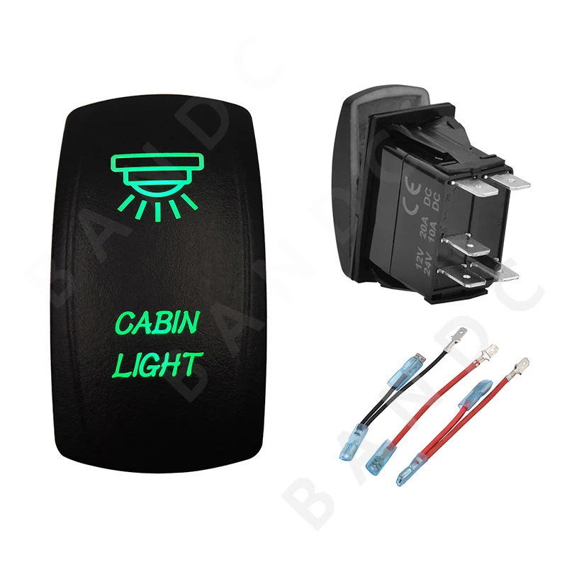 Особенности: 5 контактов ВКЛ-ВЫКЛ SPST (однополюсный одиночный бросок)ЛазаR-Etched кулисный переключатель с двойным встроеннымЗеленыйСветодиодные фонари, номинальный ток-20 ампер/12 В-10 ампер/24 В постоянного тока.