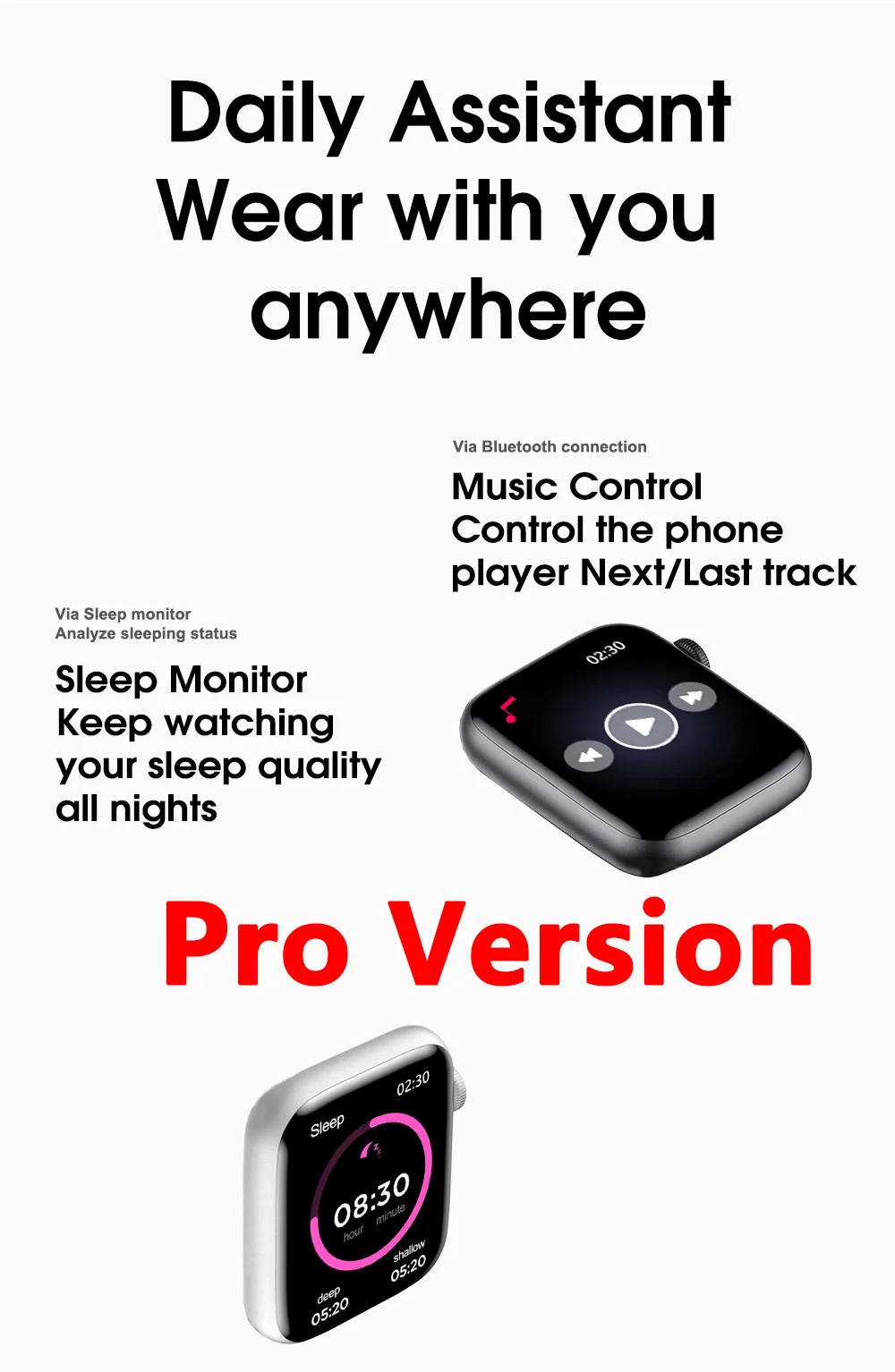 Примечание:1. Эти часы 44 мм. У него есть только одна круглая кнопка, пожалуйста, свяжитесь с нами, чтобы просмотреть более подробную информацию и реальные фотографии перед покупкой.2. Пожалуйста, не помещайте умные часы в горячую воду или в воду в течение длительного времени.3. Умные часы не могут синхронизировать телефон ios с телефонной книгой и сообщением4. Мы поддерживаем оптовые и прямые поставки, пожалуйста, свяжитесь с нами для получения более подробной информации, спасибо.Спецификация:Набор микросхем: MTK2502DРазмер: 44*38*10,7 ммМатериал корпуса: цинковый сплавРемешок: подходит для всех оригинальных ремешков 42/44 ммЗарядное устройство: магнитное зарядное устройствоЭкран: 1,75 HD IPS, 320*385Сенсорный экран: 2.5D изогнутый емкостный сенсорный экран BluetoothВерсия: 3,0, 4,0Аккумулятор: литий-полимерный аккумулятор большой емкости 220 мАчЯзыки: китайский, традиционный, английский, немецкий, испанский, итальянский, французский, португальский (Португалия), Португальский (Бразилия), русский, индонезийский, малайский, польский, вьетнамский, иврит, арабский, персидский, тайский, Бирманский, турецкийФункция:Основные функции: поддержка звонков по Bluetooth, проверка температуры тела, частота сердечных сокращений, BP и ECG,Шаги, Fruit wath 5 размер, 44 мм сменный ремешок, меню Smart Beehive style, меню nine boxBluetooth Push: SMS, WeChat, электронная почта, Facebook новости и другие уведомления приложений напоминаниеМонитор сердечного ритма: монитор сердечного ритма, мониторинг сердцебиения 24 часаЭКГ: анализ данных ЭКГШагомер: упражнения, потребление калорий, запись пробегаНапоминание о малоподвижности: пришло время двигаться и менять свой нездоровый образ жизниМонитор сна: запись и анализ состояния сна научно и количественноНайти телефон: напоминание о потере. Двусторонний поискМузыка Bluetooth: управление воспроизведением музыки на вашем телефонеВызов: Поддержка Bluetooth звонков с динамиком и микрофономВибрирующий двигатель: ПоддержкаДругие функции: будильник, календарь, секундомерУпаковка:Умные часы * 1Зарядный кабель * 1Руководство пользователя * 1Оригинальная Розничная коробка * 1