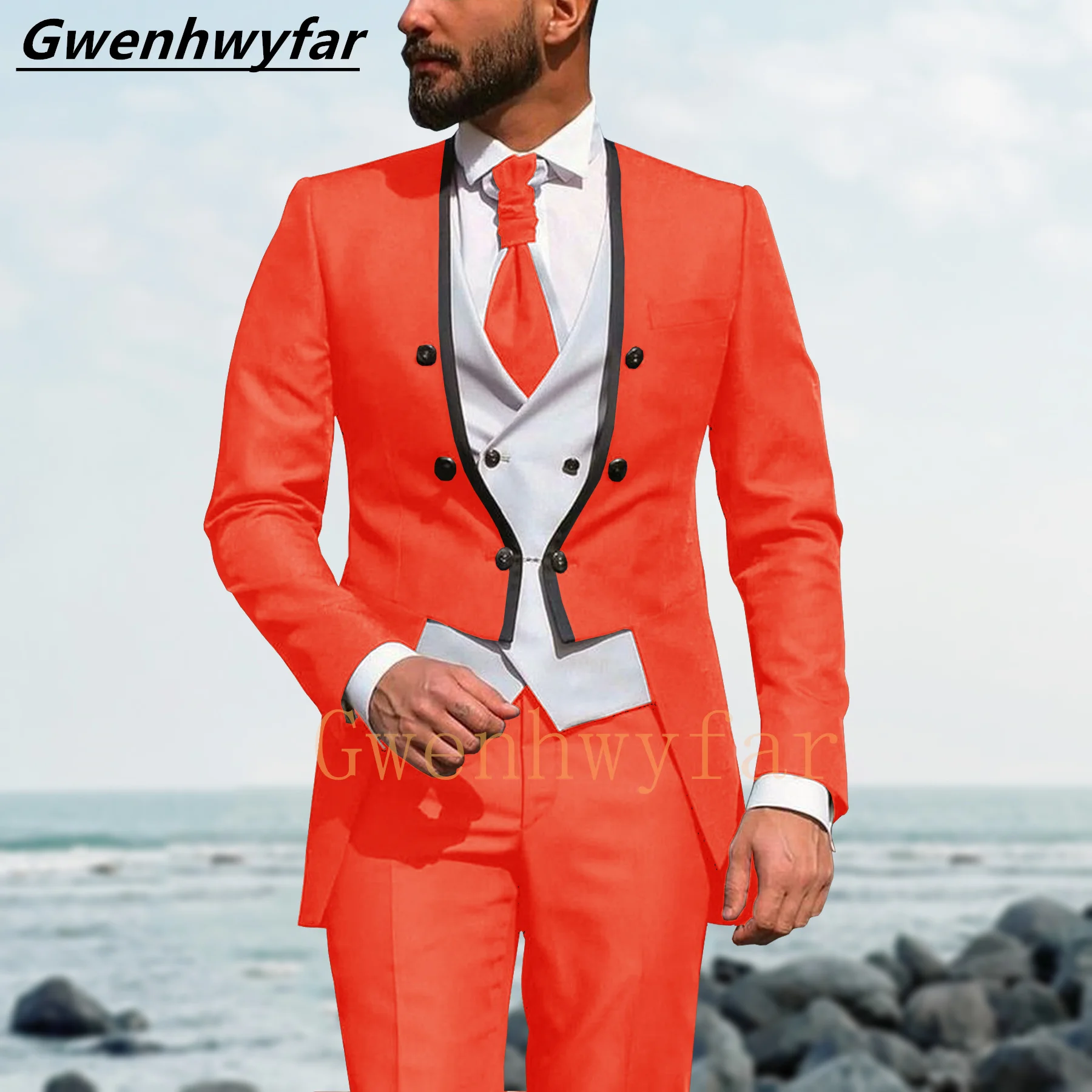 Новый дизайн мужского костюма Gwenhwyfar с черной окантовкой, Свадебный мужской костюм травяного зеленого цвета с белым жилетом, красный королевский синий мужской костюм