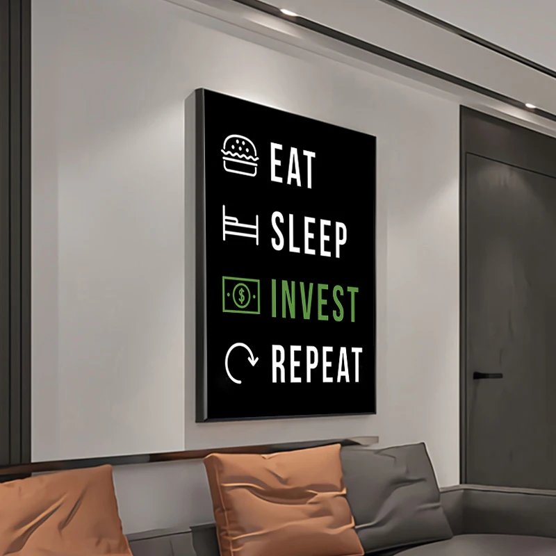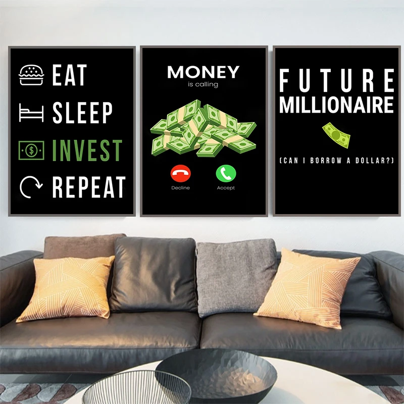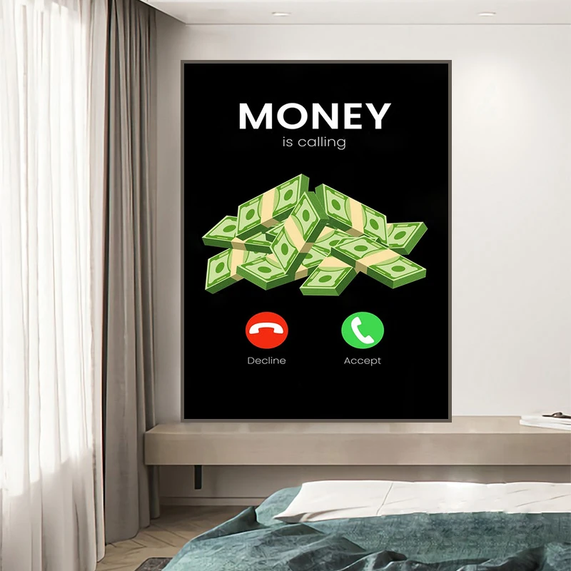 Плакат на холсте с изображением купюр и денежных купюр, вдохновляющ...