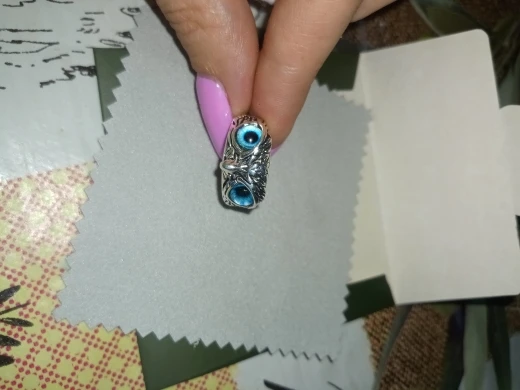 Отличное кольцо, выглядит интересно. Глаза у совы переливаются на свету. Очень довольна заказом и быстрой доставкой.