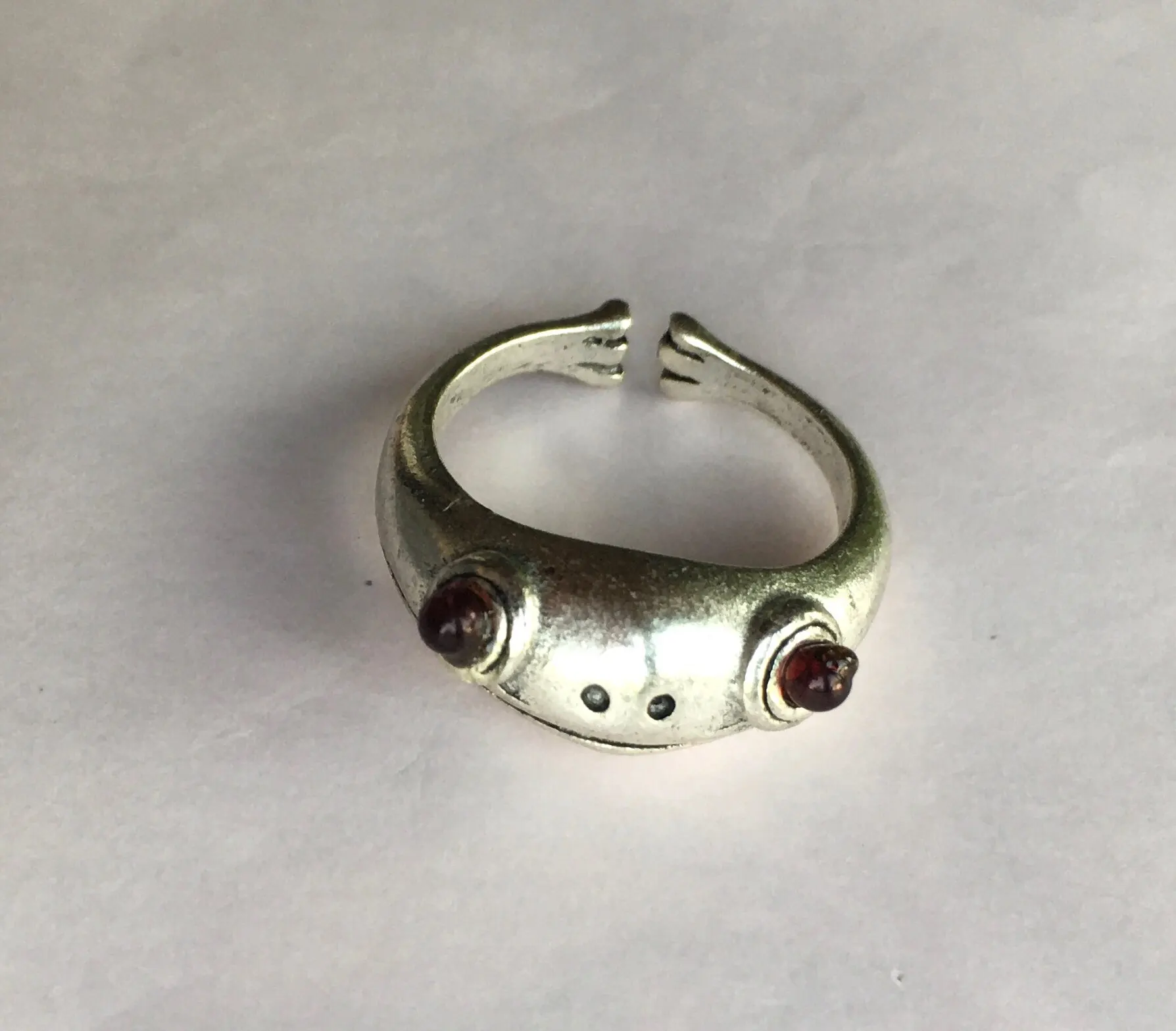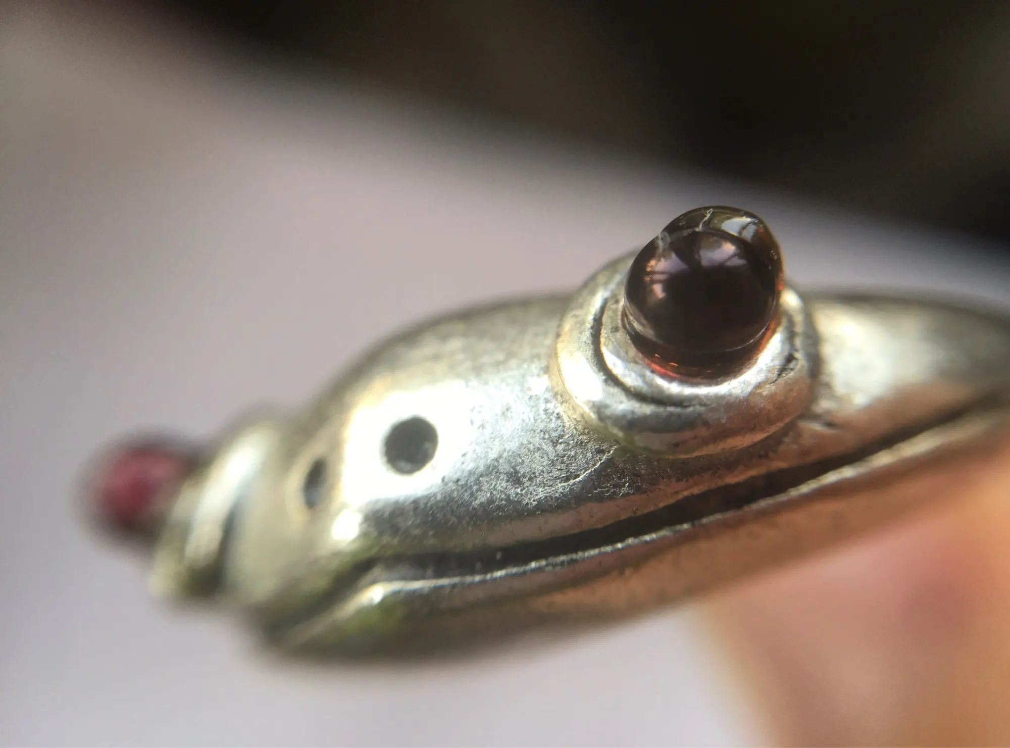 Очень красивая лягушонка .Размер регулируется. Внешне похожа серебро с родированным покрытием. Выглядит недешево, немаленькое колечко.
