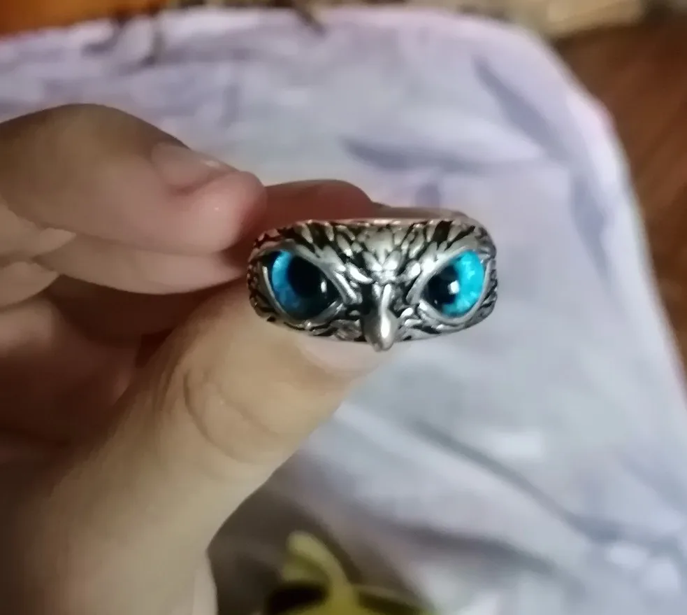 Очень классное колечко! Хоть мне и большое, но эти глаза! Это просто чудо! Если наклонять кольцо в разные стороны, такое ощущение, что сова за тобой наблюдает:)