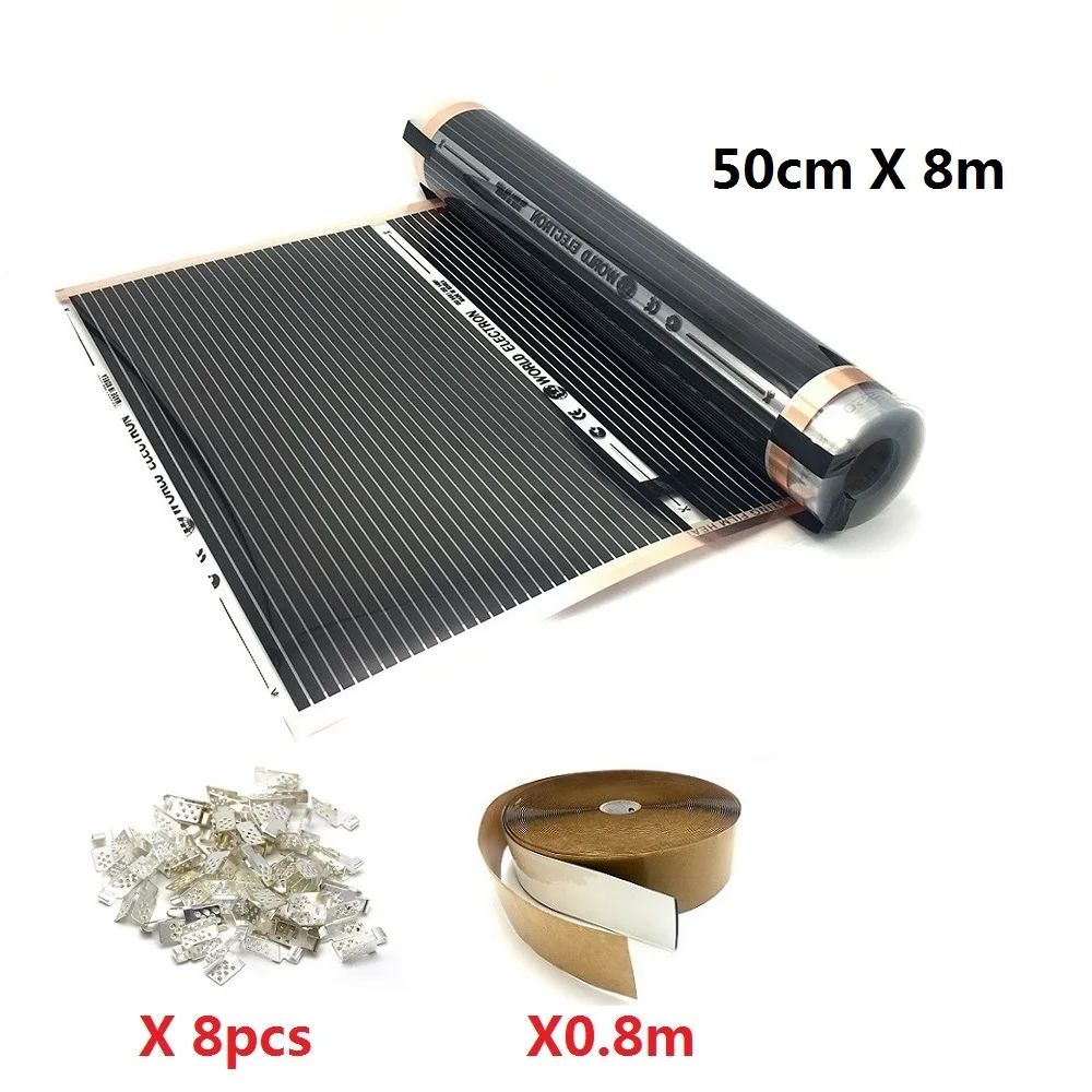 50cmX8m нагревательная пленка 220 В 220 Втм2 теплый напольный коврик с 8 шт. хомутов + 0,8 м изоляционные пасты