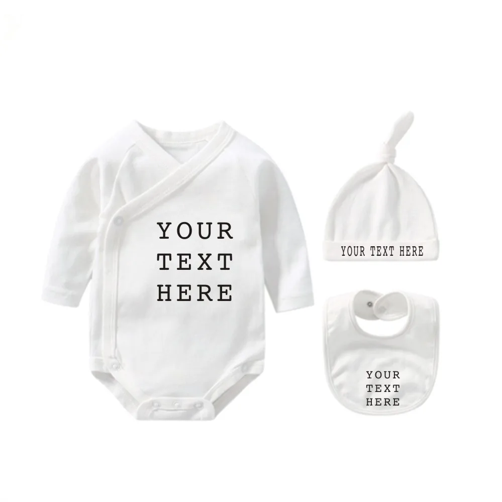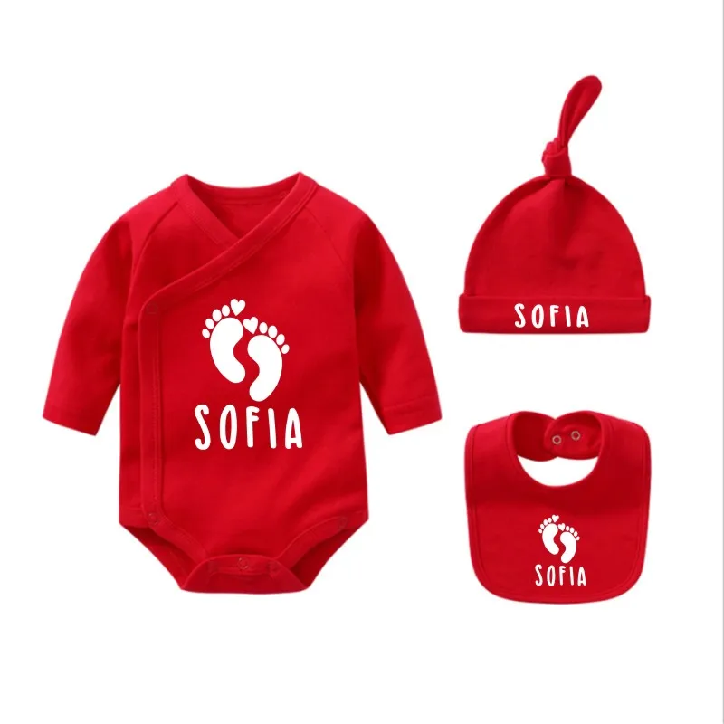 Персонализированные новорожденных Подарочный набор футболок для детей, память роскошный подарочный набор пользовательское имя детская одежда костюм со шляпой + нагрудник комбинезон боди