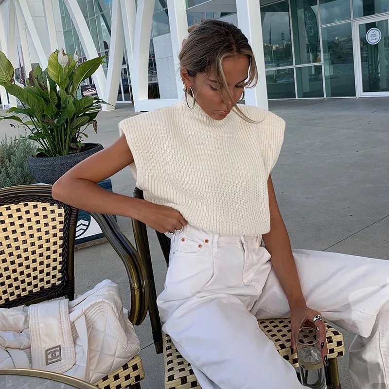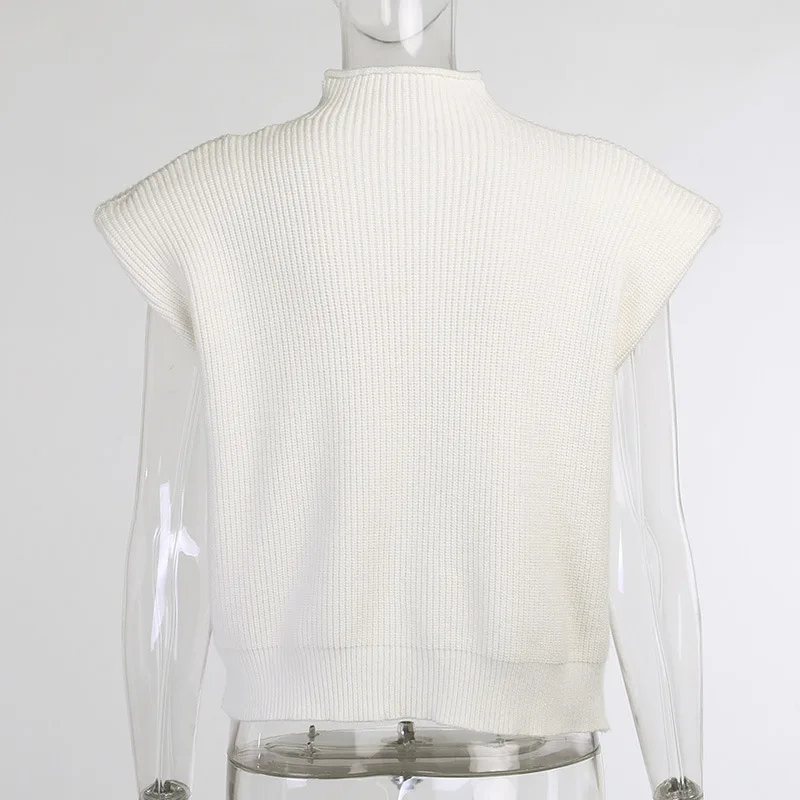 Женский вязаный свитер-водолазка без рукавов, с наплечниками