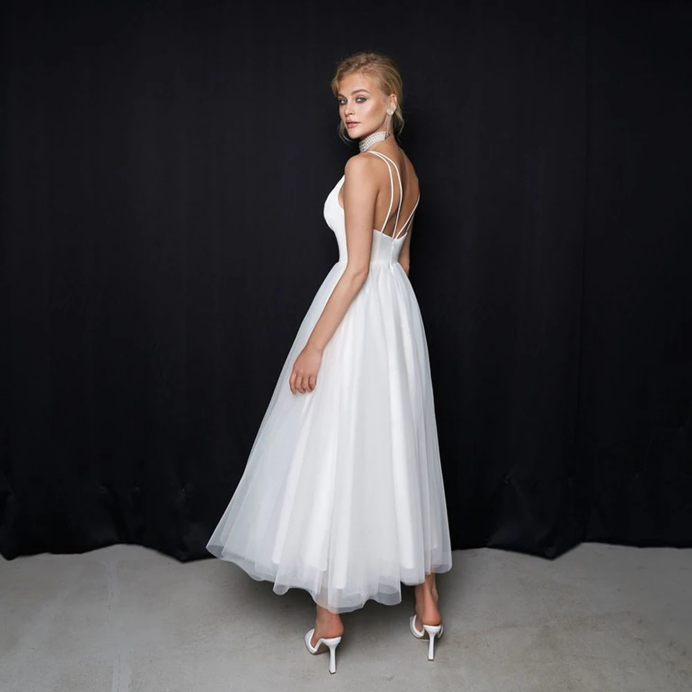 Узн длиной до щиколотки ТРАПЕЦИЕВИДНОЕ атласное свадебное платье v-образный вырез тонкие лямки Тюль пикантное свадебное платье невесты платье Vestido De Novia