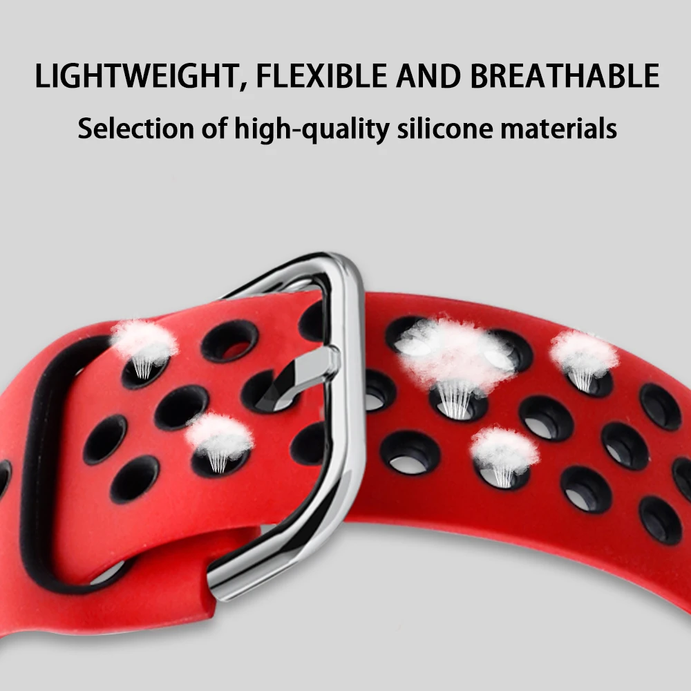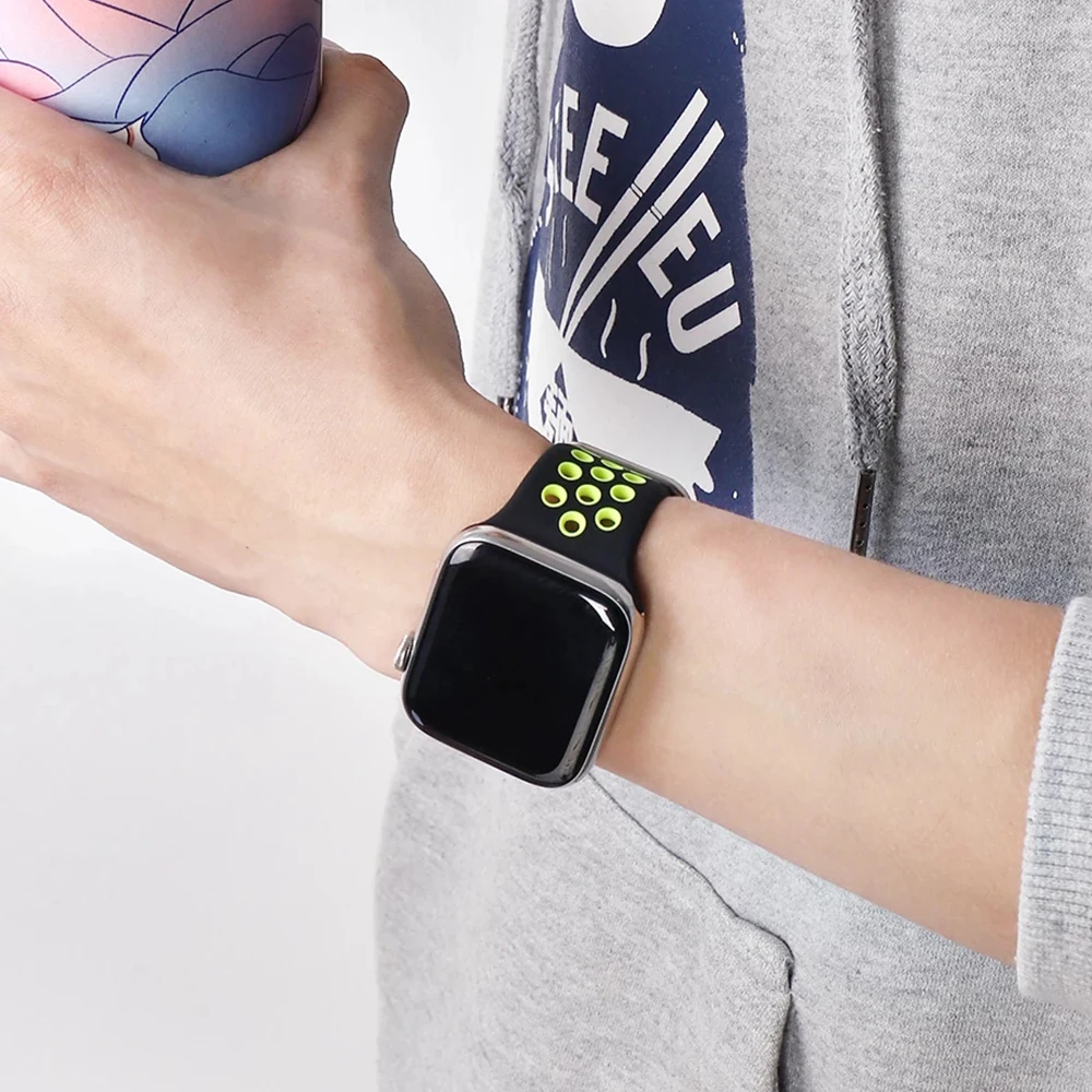 Спортивный силиконовый ремешок для Apple Watch Band 44 мм 42 мм 45 мм 41 мм 40 мм 38 мм браслет correa для iWatch Series 3 4 5 SE 6 7 bandЦветная Пряжка: ремень с пряжкой разных цветов в зависимости от цвета ремешка Apple. Соответствующее соответствие позволит Вашему Apple Watch выглядеть по-новому. (За исключением часов)Безопасный и простой в установке: ремешок Apple Watch имеет классическую металлическую пряжку, которая является более безопасной и стабильной. Он может быть установлен за считанные секунды без инструментов.Дышащая конструкция с отверстиями: все ремни iWatch оснащены вентиляционными отверстиями, подходят для занятий спортом. Вода или пот, быстро сохнет и ваша кожа будет чувствовать себя свободно.Регулируемый Размер: силиконовый ремешок для Apple Watch подходит для большинства запястья.Высококачественные материалы: ремешок для Apple Watch имеет мягкий и гладкий силикон, прочный и светильник. При ношении силиконового спортивного ремешка для Apple Watch для любых видов спорта на открытом воздухе, он чувствует себя комфортно и безвредно для кожи.