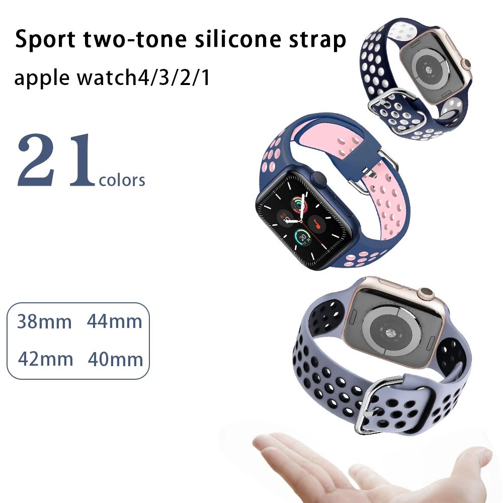 Ремешок силиконовый для iWatch 44 мм 42 мм 40 мм 38 мм, двухцветный...