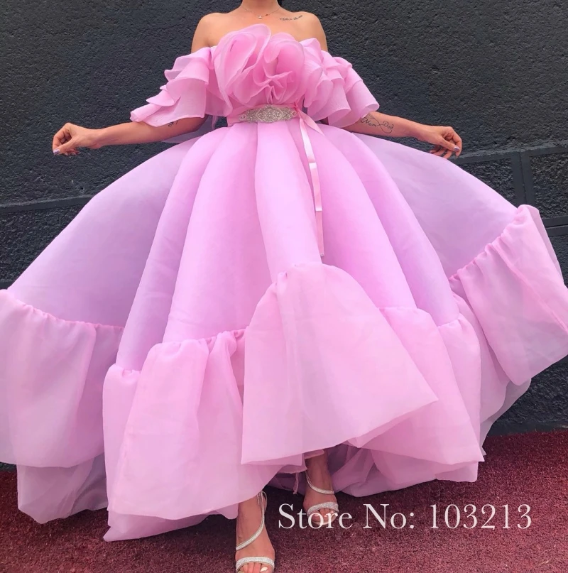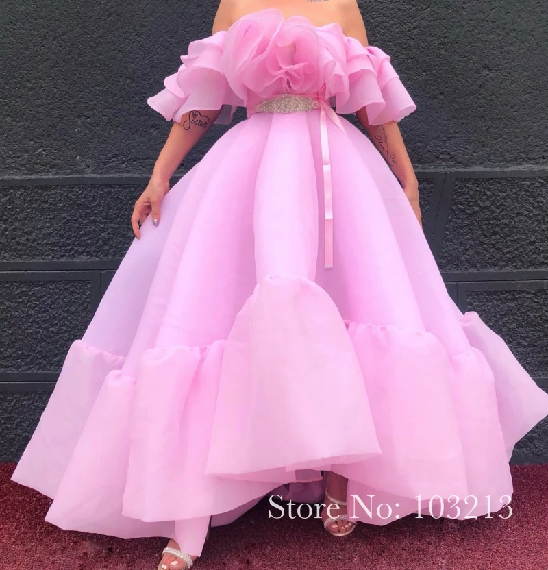 Фуксия с открытыми плечами бальное платье выпускное платье с оборками из органзы пол Длина Вечеринка платье vestido De formatura-Верде