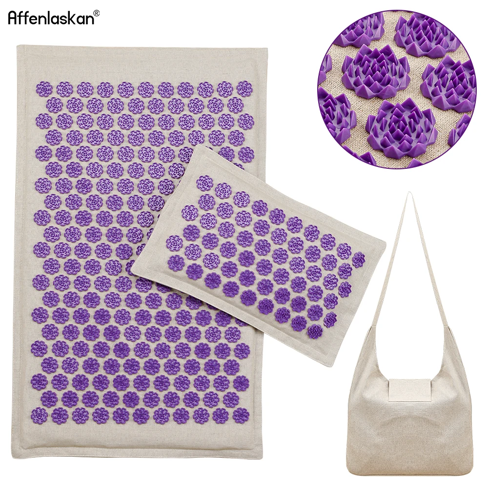 Натуральный льняной коврик для йоги из кокосовой пальмы для массажа акупрессуры, спортивный коврик для подушки с сумкой, коврик для акупрессуры с шипами лотоса, подушка