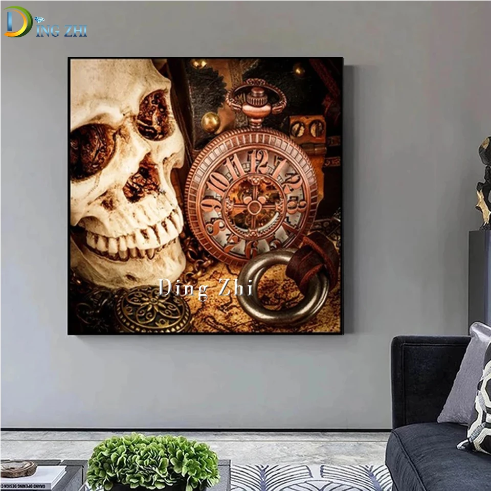 Картина с черепом 5D "сделай сам", алмазная вышивка, ретро, карманные часы, мозаика, картина из страз, квадратная, круглая, вышивка крестиком, подарок