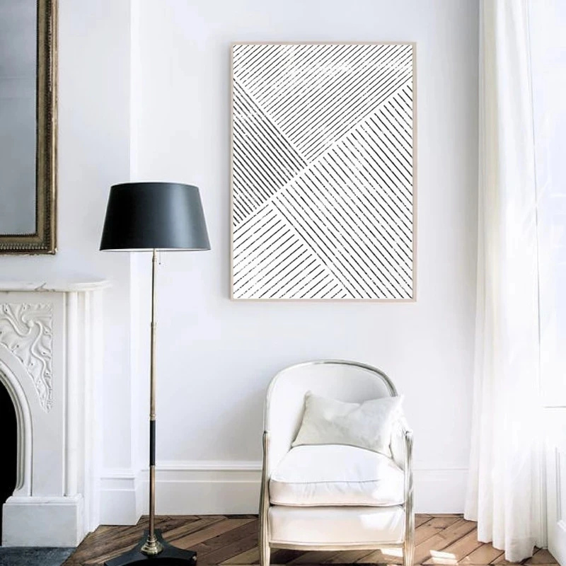 Черно-белая стена, минималистичный принт, Геометрические линии, сов...