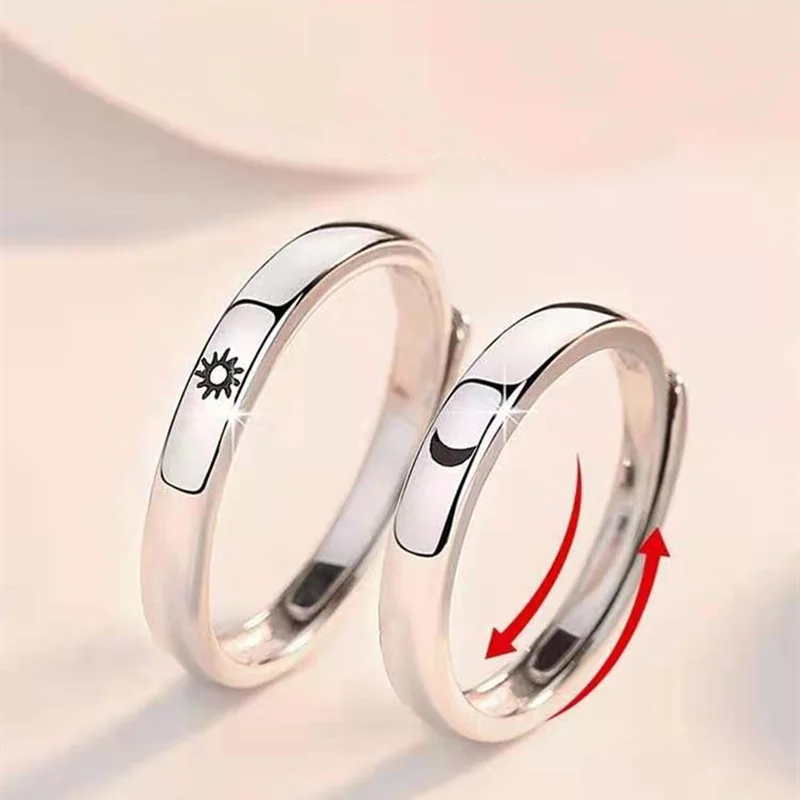Минималистичные открытые серебряные кольца регулируемого размера, кольцо для пар с Луной и солнцем для мужчин и женщин, ювелирные изделия для помолвки, подарки