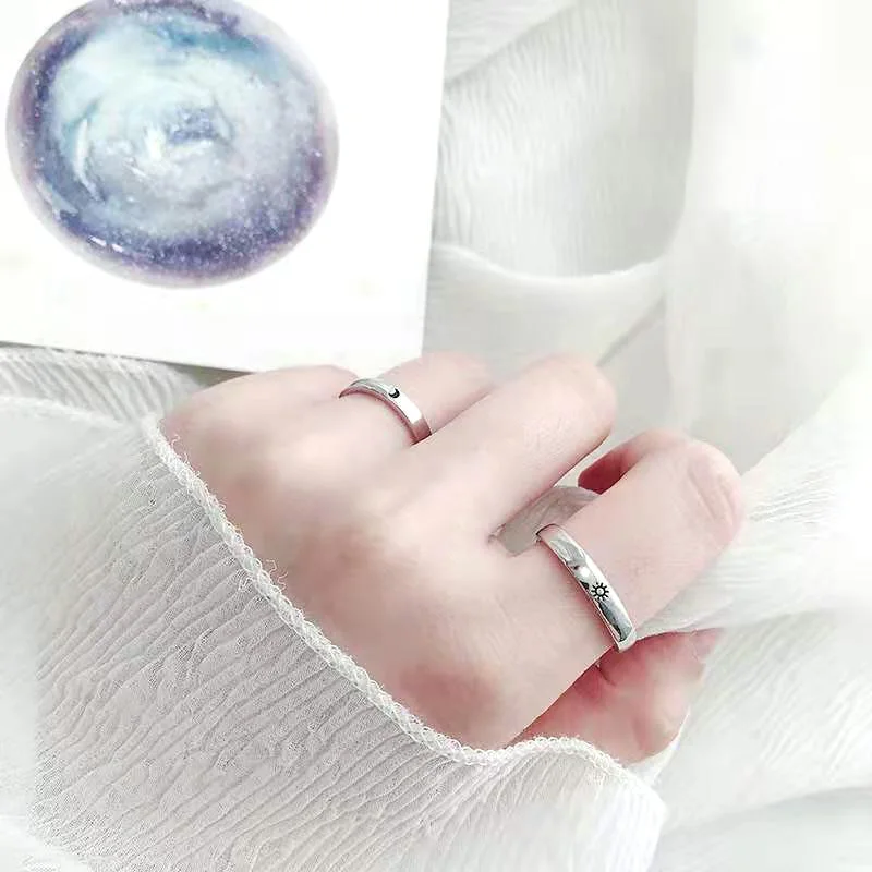 Минималистичные серебряные открытые кольца Регулируемый размер Кольцо Солнце Луна парные кольца для мужчин женщин пара обручальные украшения подарки