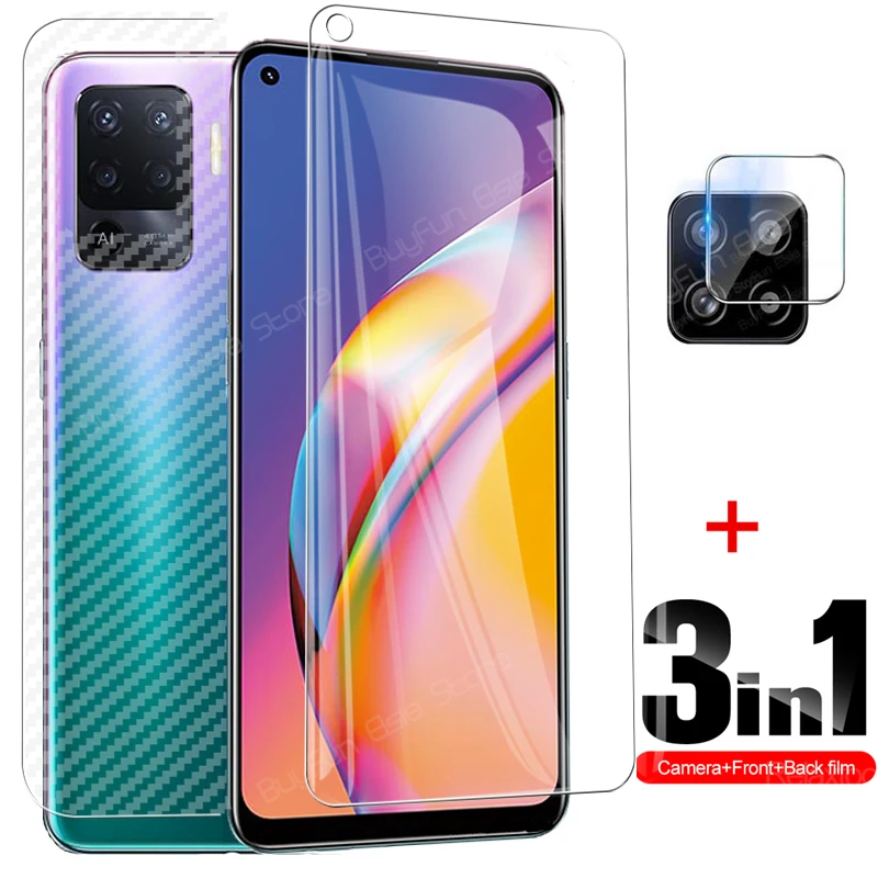 Для Oppo Find X3 X2 Reno 5 4 Lite A92S A91 A53 мягкое заднее углеродное волокно + закаленное стекло для Oppo A15 A12 Защитная пленка для камеры