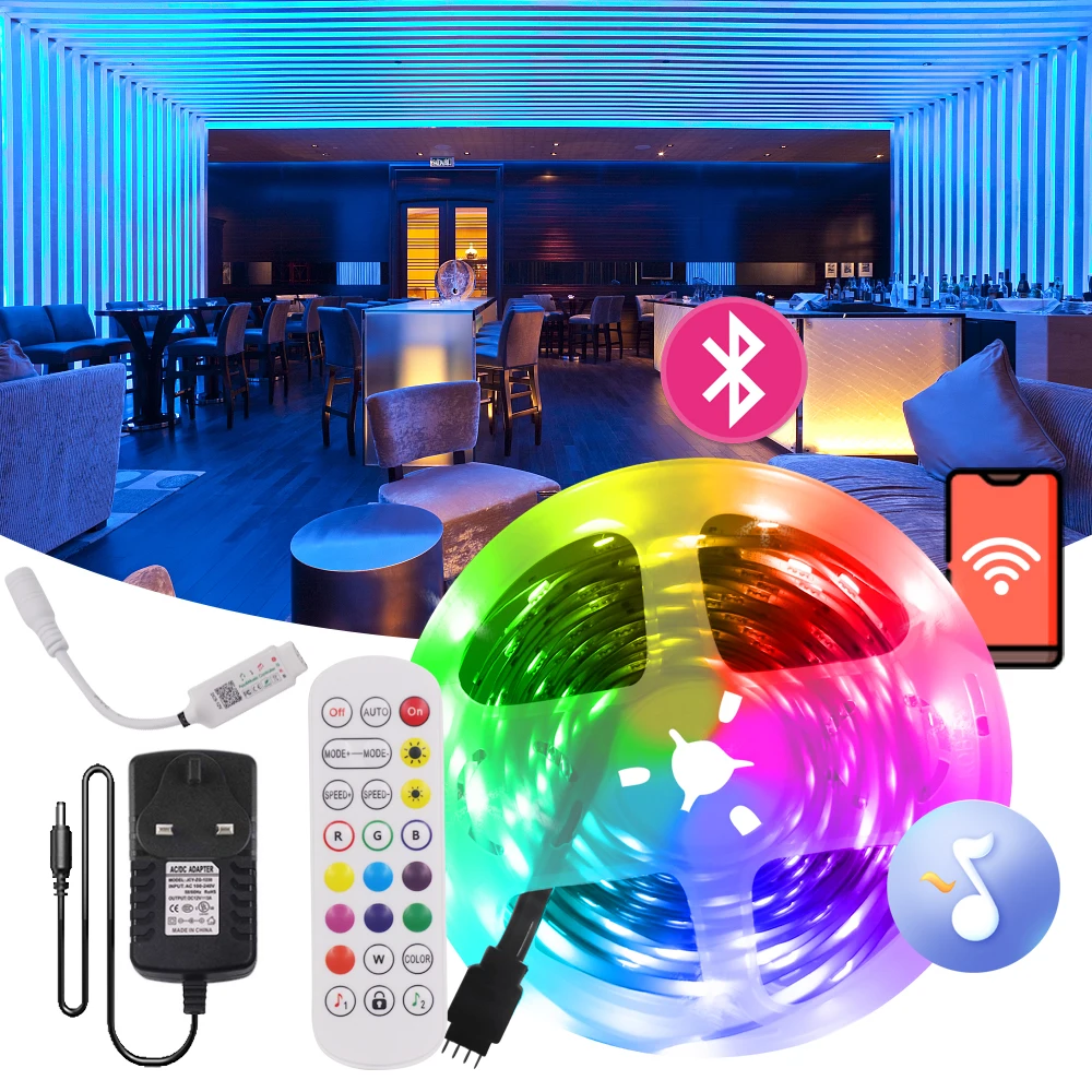 1)RGB 5050 SMD светодиодный, ультра-яркий.2) долгий срок службы достигает 5000 часов.3) Дополнительная длина от 5 метров до 20 метров.4) кривые ленты, гибкие и легко управляемые.5) полностью гладкий и ровный диффузный светильник, чтобы избежать проблем с неровным светильник6) низкое энергопотребление, энергосбережение ..7) Пульт дистанционного управления с помощью контроллер с 24 кнопками и Bluetooth, кусочек торта, чтобы управлять светодиодный полосы светильник.8) Функция синхронизации, интеллекта и соответствия.9) музыкальный режим Bluetooth, светильник автоматически изменит цвет при воспроизведении музыки на вашем телефоне.10) Скорость мигания, цвет и яркость регулируются, Украшение DIY светильник в любое время.11)4 варианта для розеток-Великобритания/США/Австралия/ЕС