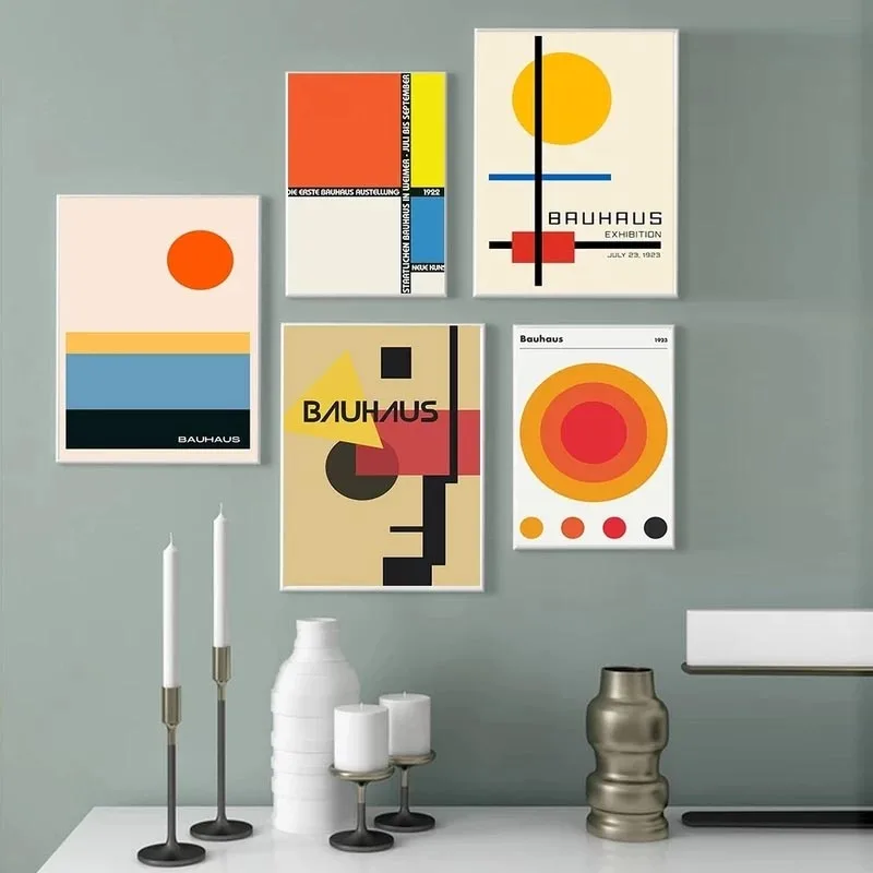 Плакаты в стиле ретро Bauhaus, абстрактные Оранжевые Геометрические рисунки, художественные картины на холсте, настенные картины для декора гостиной