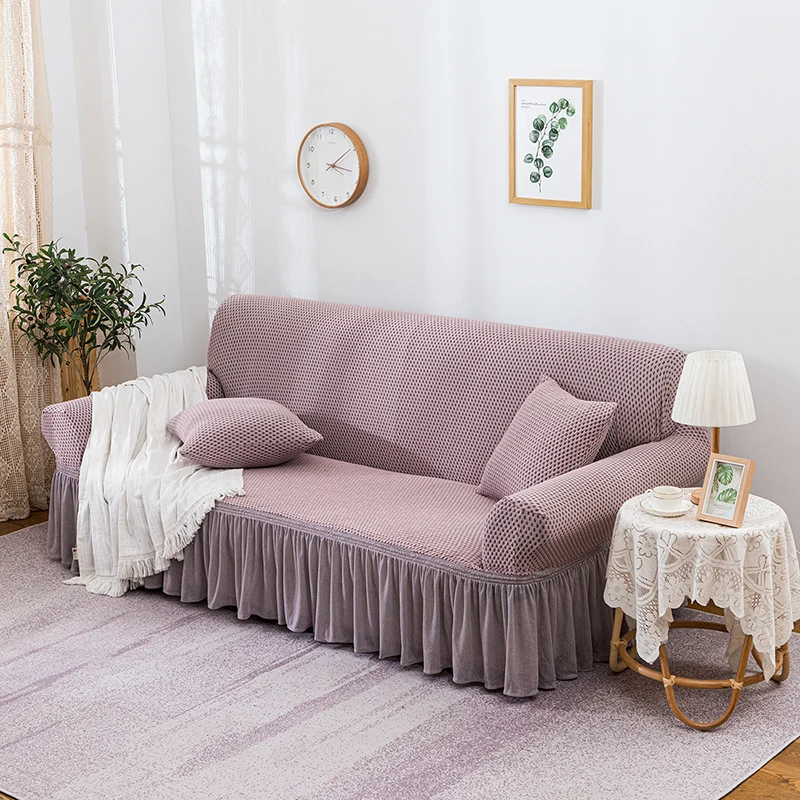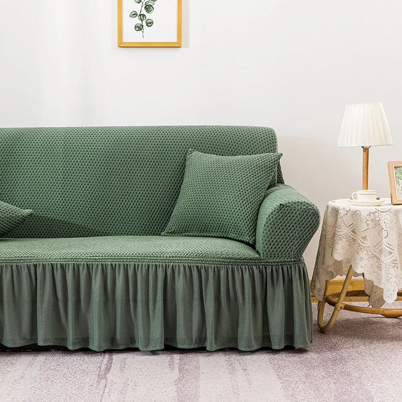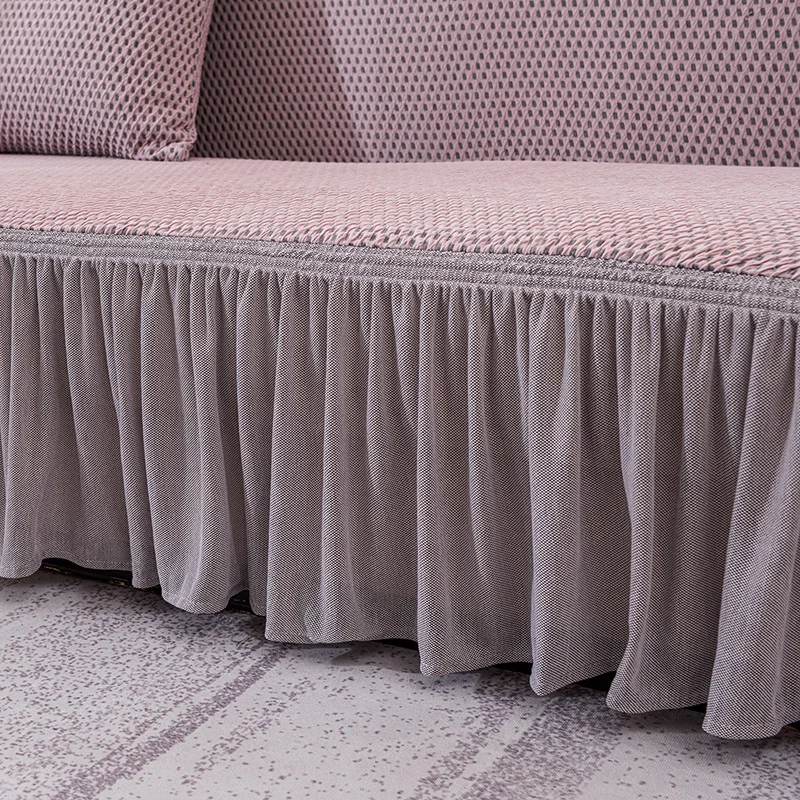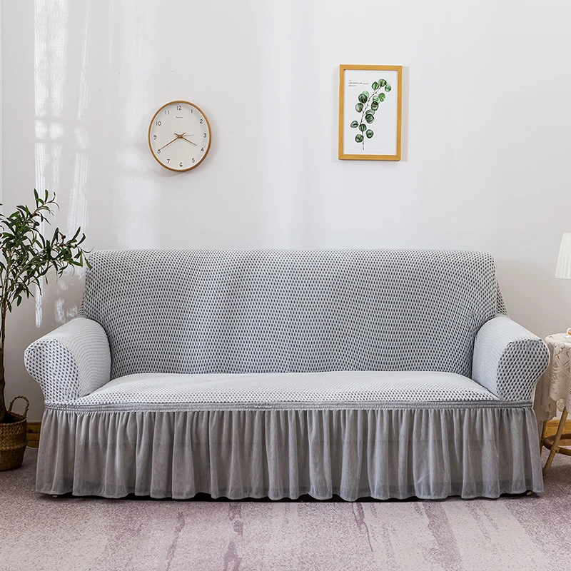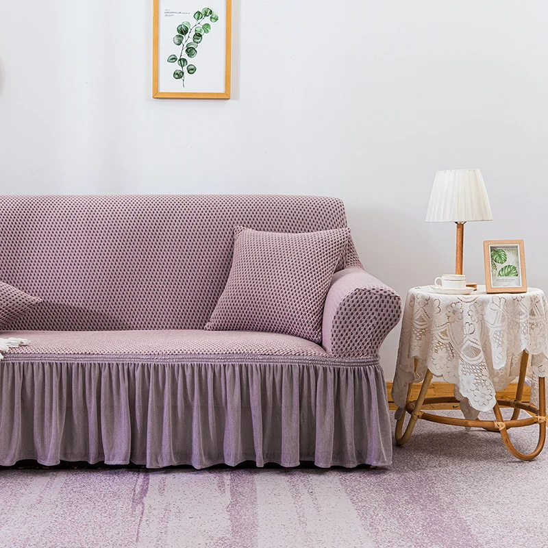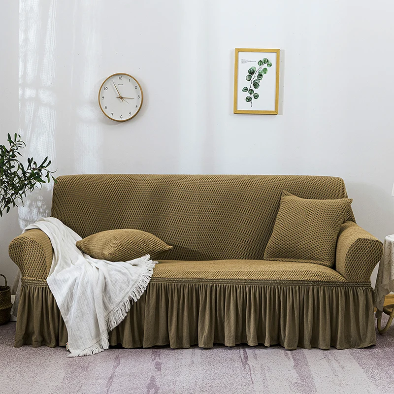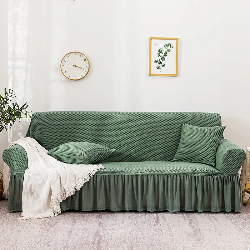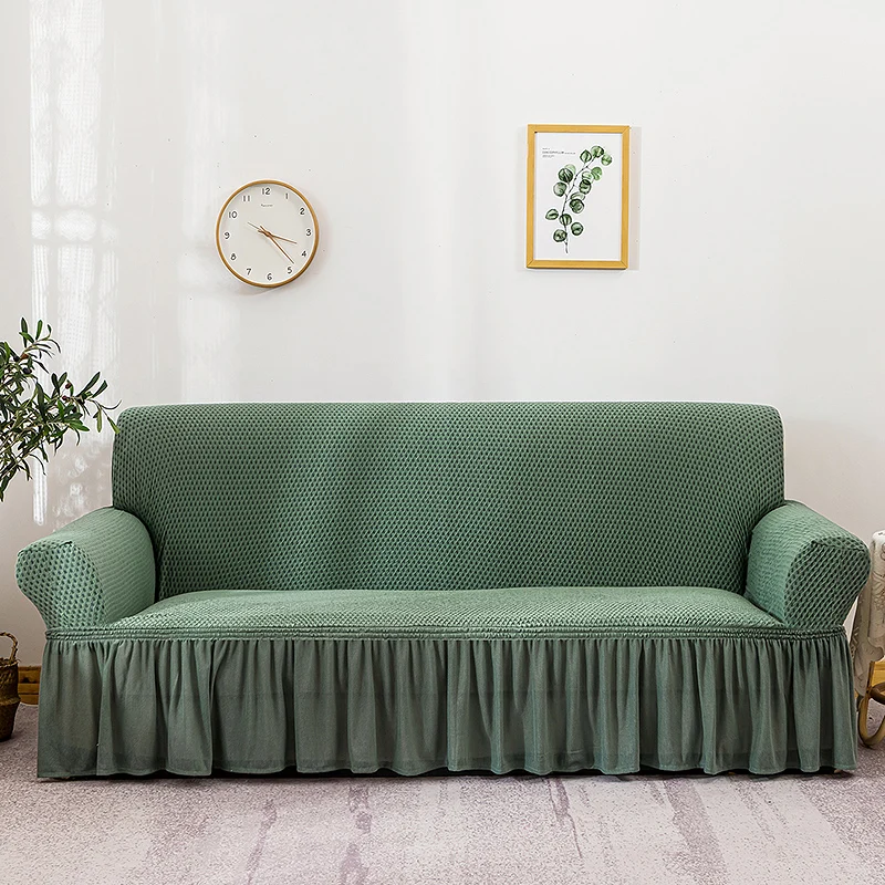 Чехол для дивана жаккардовый эластичный с юбкой, для гостиной