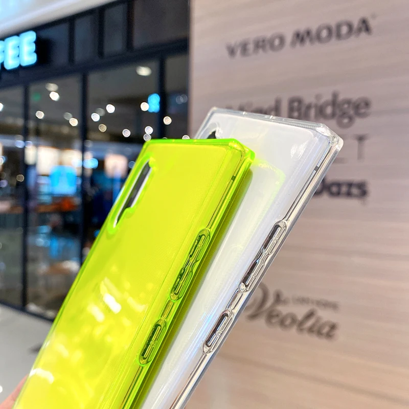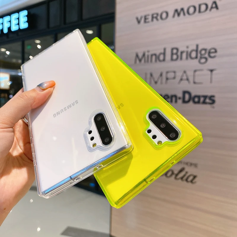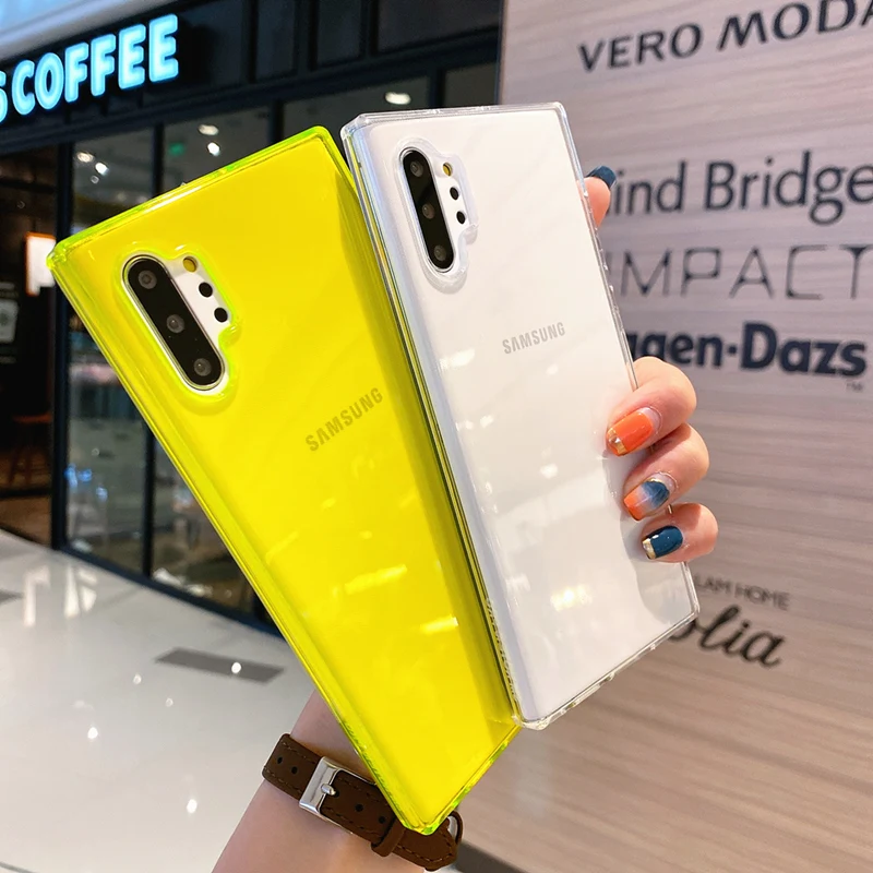 Флуоресцентные мягкие неоновые чехлы для телефонов Samsung Galaxy S21 S20 Ultra Note 20 10 A10 A70 A32 A51 A71 квадратный ударопрочный чехол