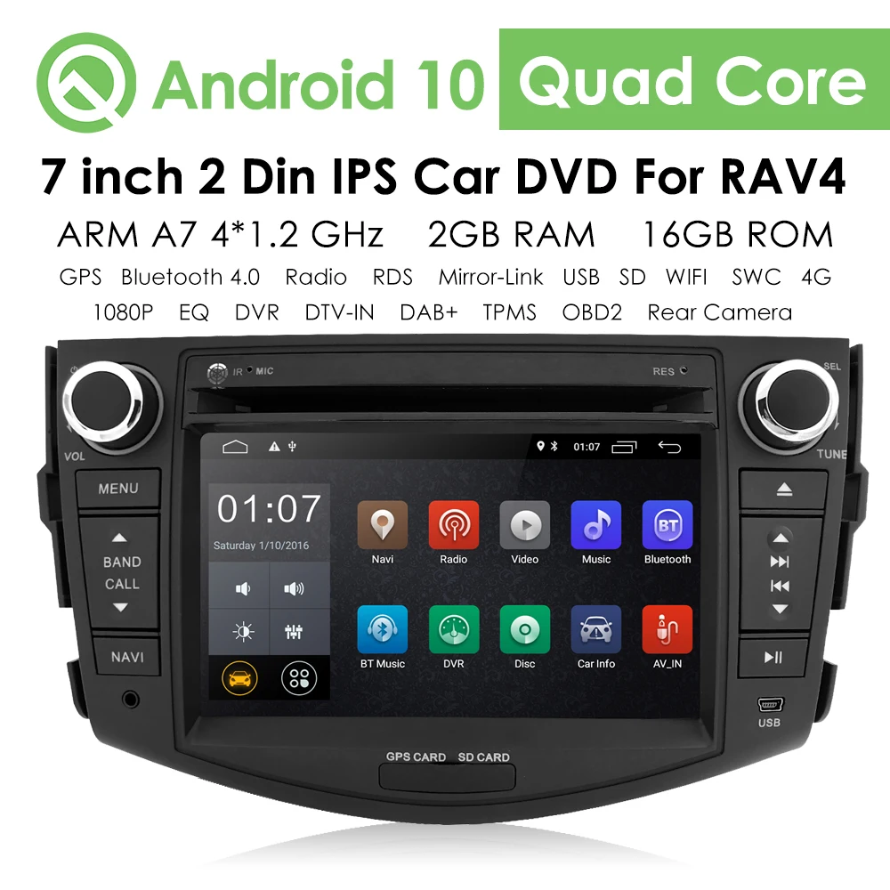 Автомагнитола 2DIN, Android 10, мультимедийный плеер для TOYOTA RAV4 2006-2012, GPS-навигация, Wi-Fi, Bluetooth, 4G, DVD, видео