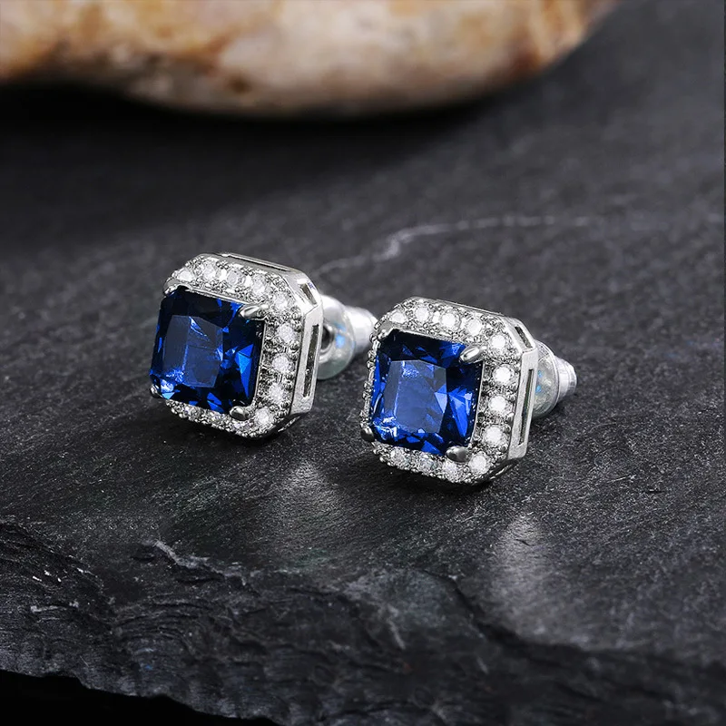 Женские квадратные серьги, циркониевые серьги зеленого, синего и бе...