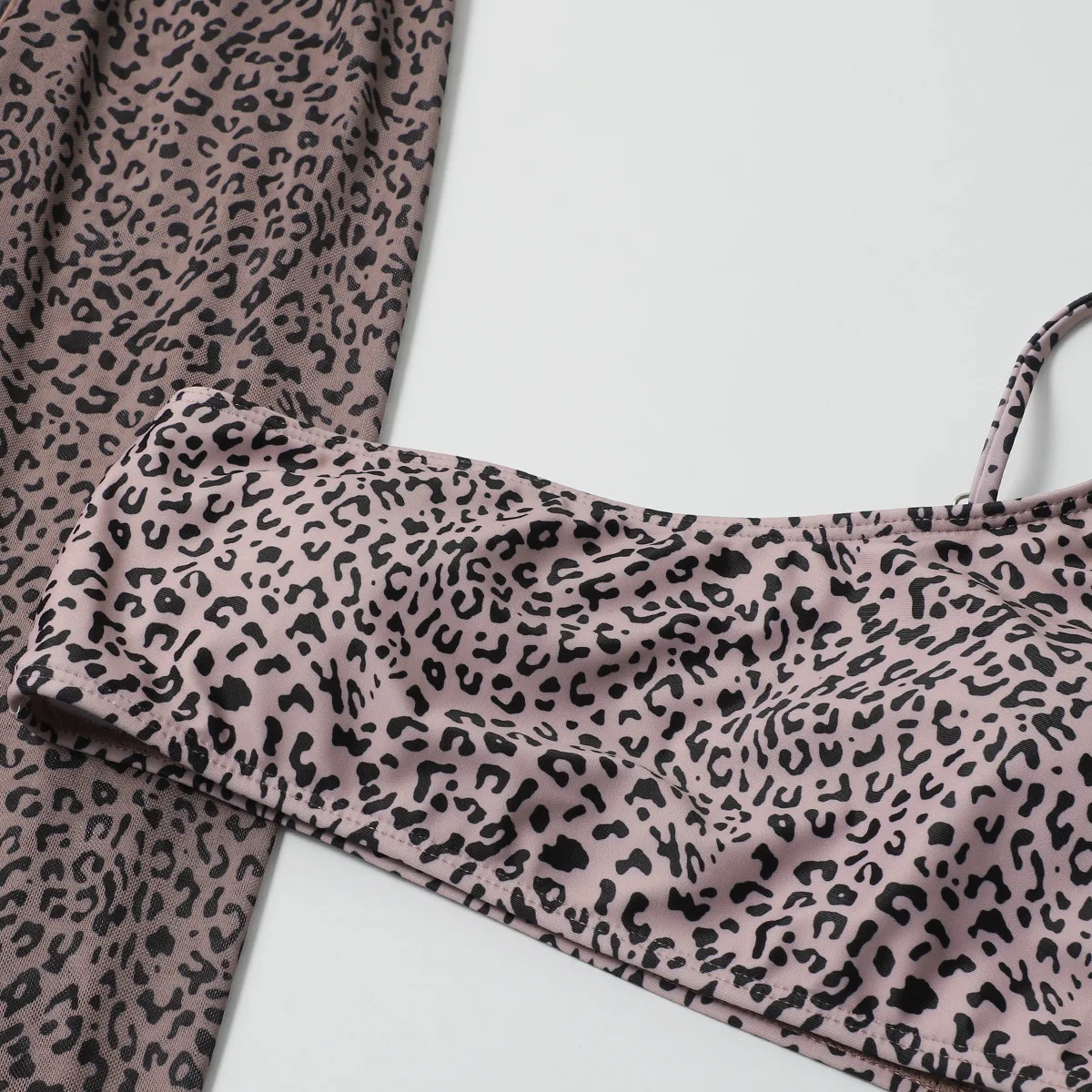 Бикини с леопардовым принтом 2021, Купальник, Женский сетчатый комп...