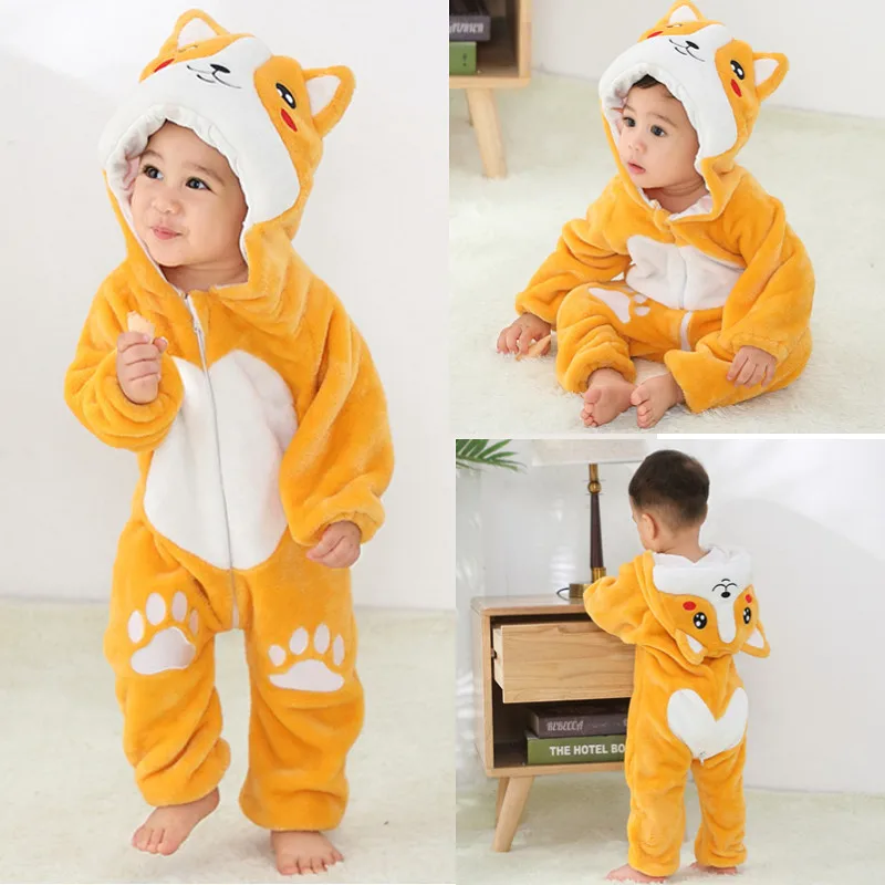 Костюм для новорожденных с животными, кроликлисаЛевобезьяна, комбинезон для косплея, детский мультяшный теплый костюм с капюшоном