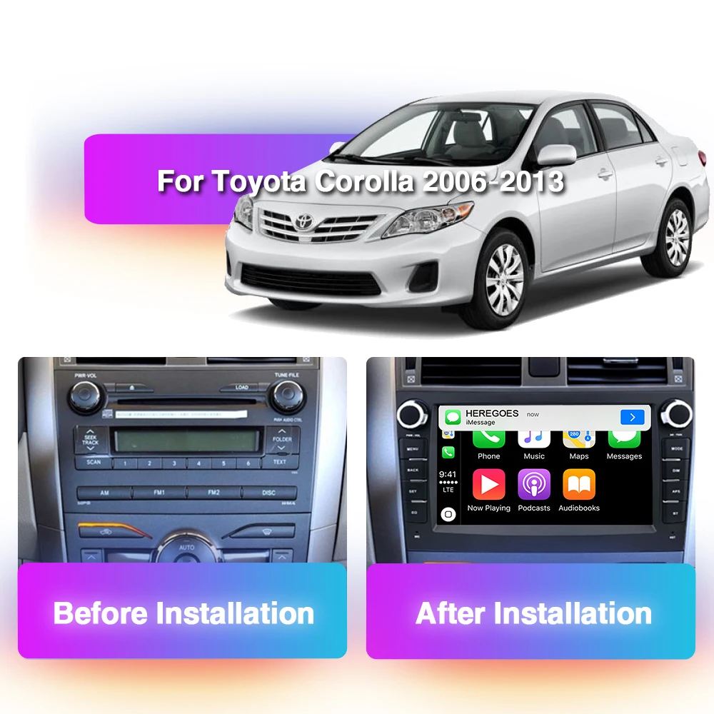 Автомобильный DVD-плеер Carplay 8 дюймов Android 11,0 для Toyota Corolla E140150 2006 - 2012 2013 4G LTE навигация GPS Радио стерео 2 din DSP
