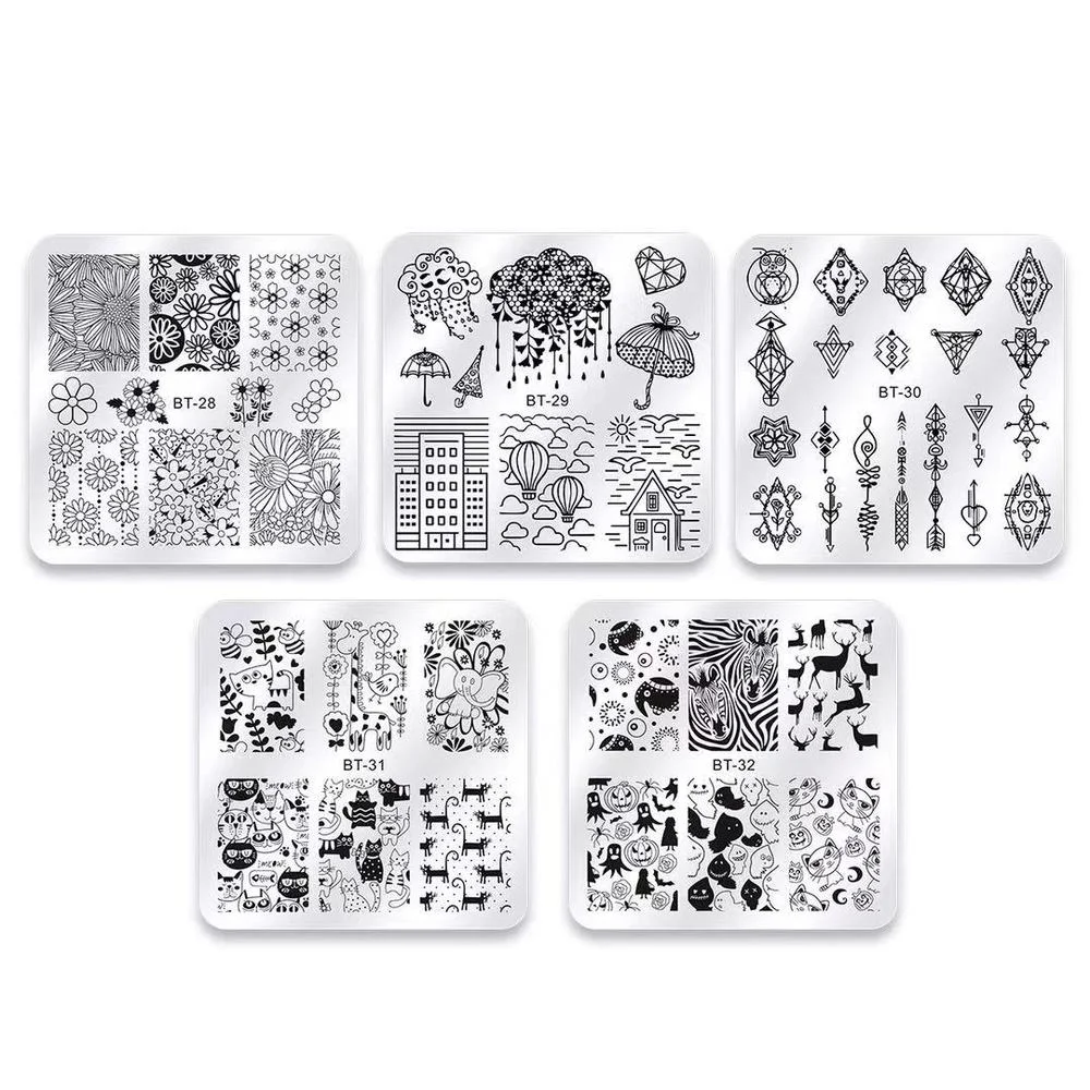 Пластина для ногтей BT Полная серия пластина для ногтей 6*6 Квадратный шаблон для печати трафарет для ногтей Форма для дизайна ногтей