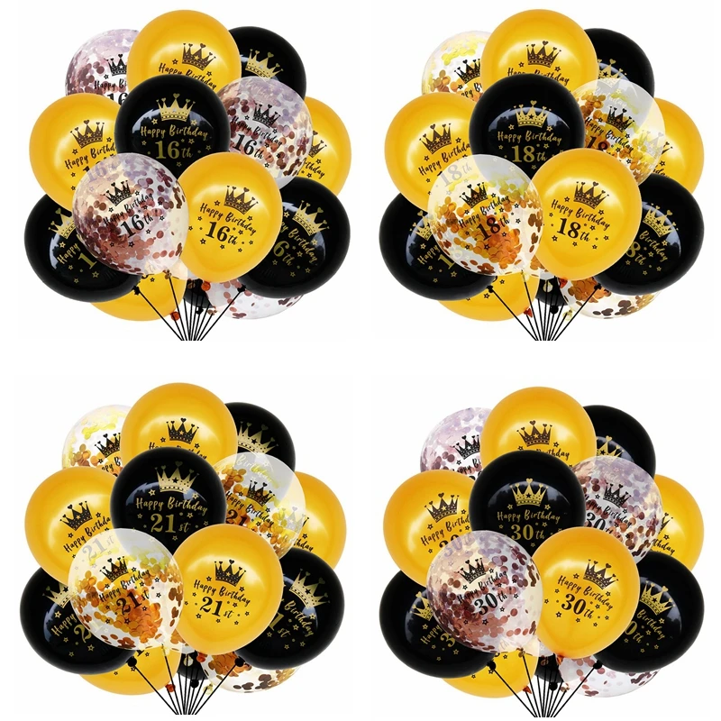 Латексные шары 18304050, 15 шт., черные золотые шары с конфетти для...