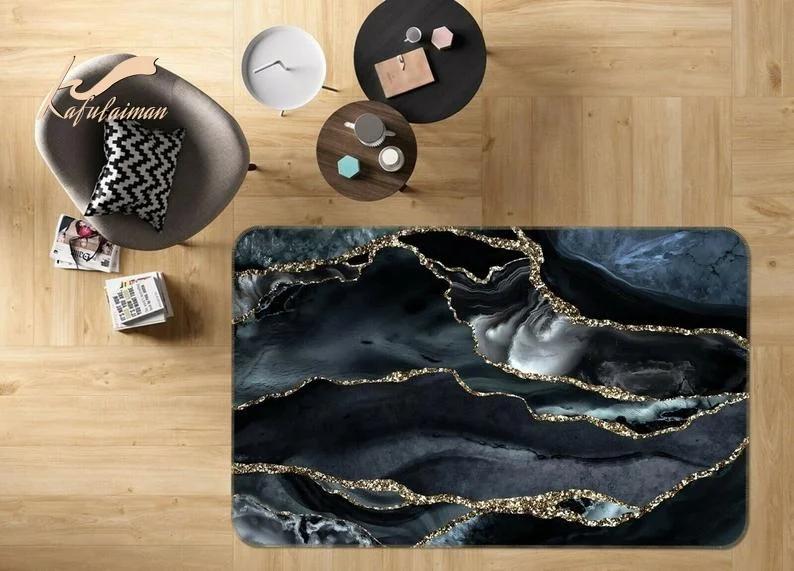 3D черный мраморный ковер, Декоративный Напольный коврик, ковер, напольный коврик, абстрактная живопись